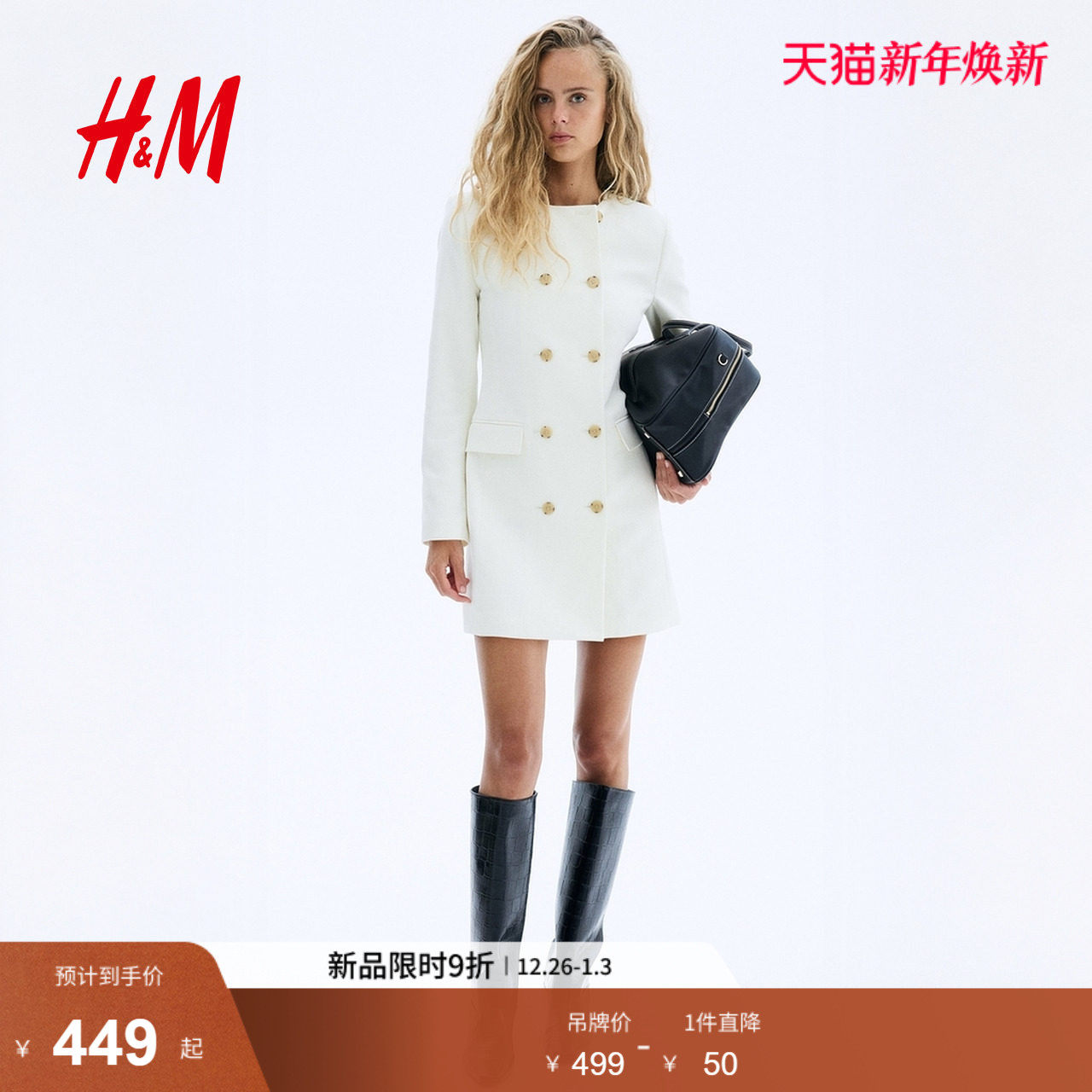 HM女装冬季连衣裙双排扣西装式连衣裙1296672