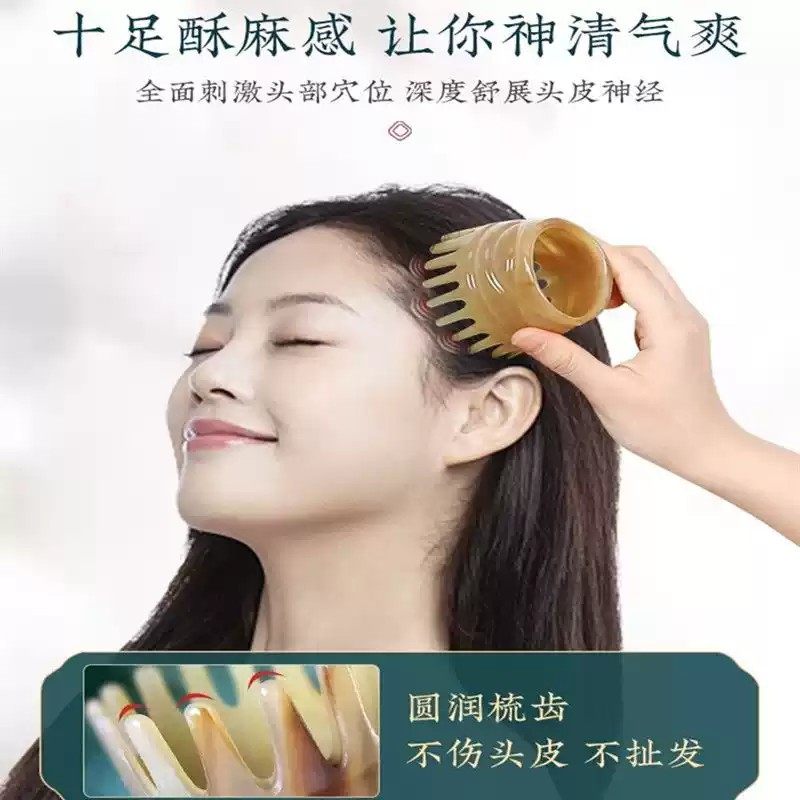 牛角圆筒按摩梳子经络天然头疗皮专用头部按摩器刮痧梳洗头
