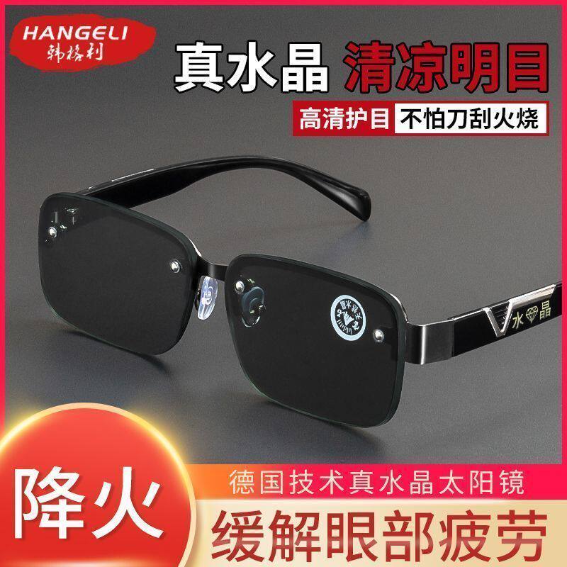 正品天然水晶石头太阳镜眼镜男大框遮光眼睛司机开车驾驶墨镜护目