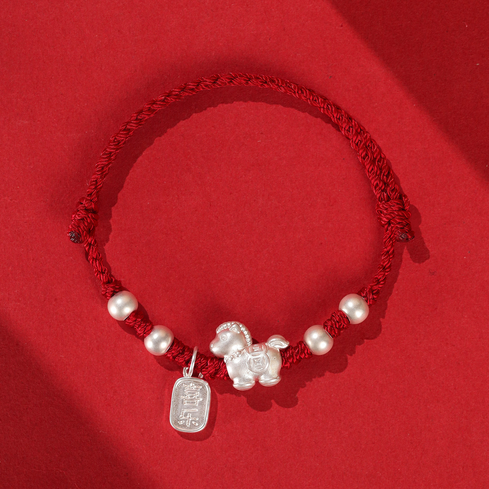 马上添财为晚足银999生肖马年本命年红手绳转运绝美手链编织绳