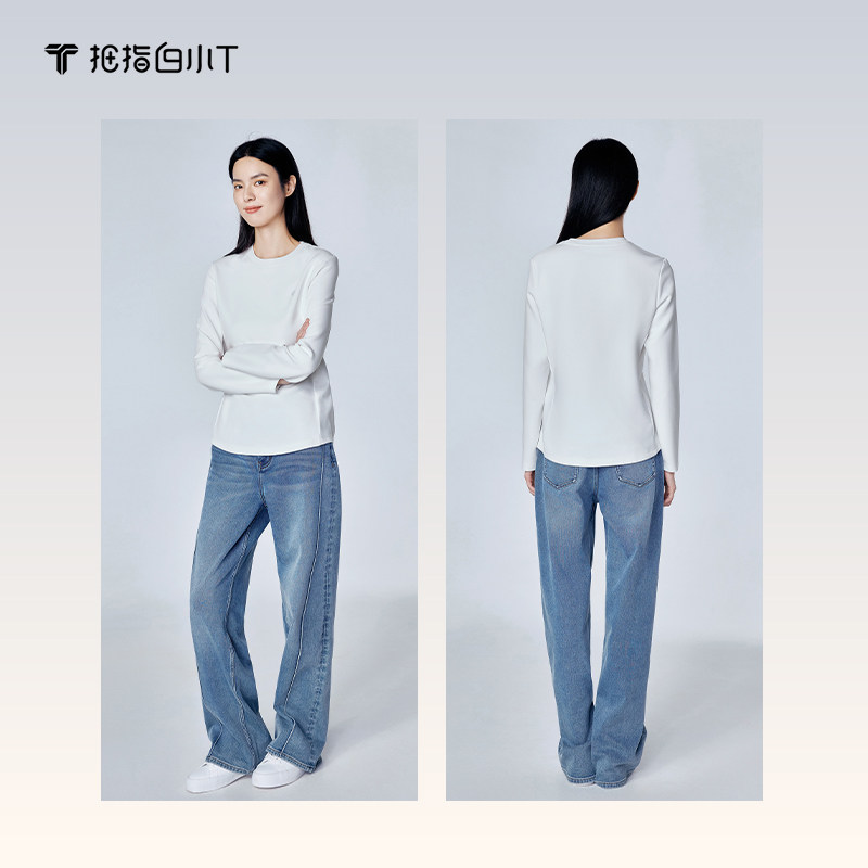 拇指白小T加绒加厚保暖长袖t恤女款圆领休闲舒适经典款百搭打底衫