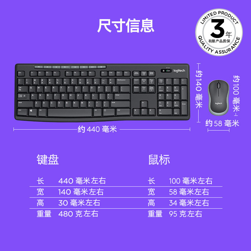 罗技MK270无线键鼠套装笔记本台式电脑家用办公鼠标键盘打字MK275