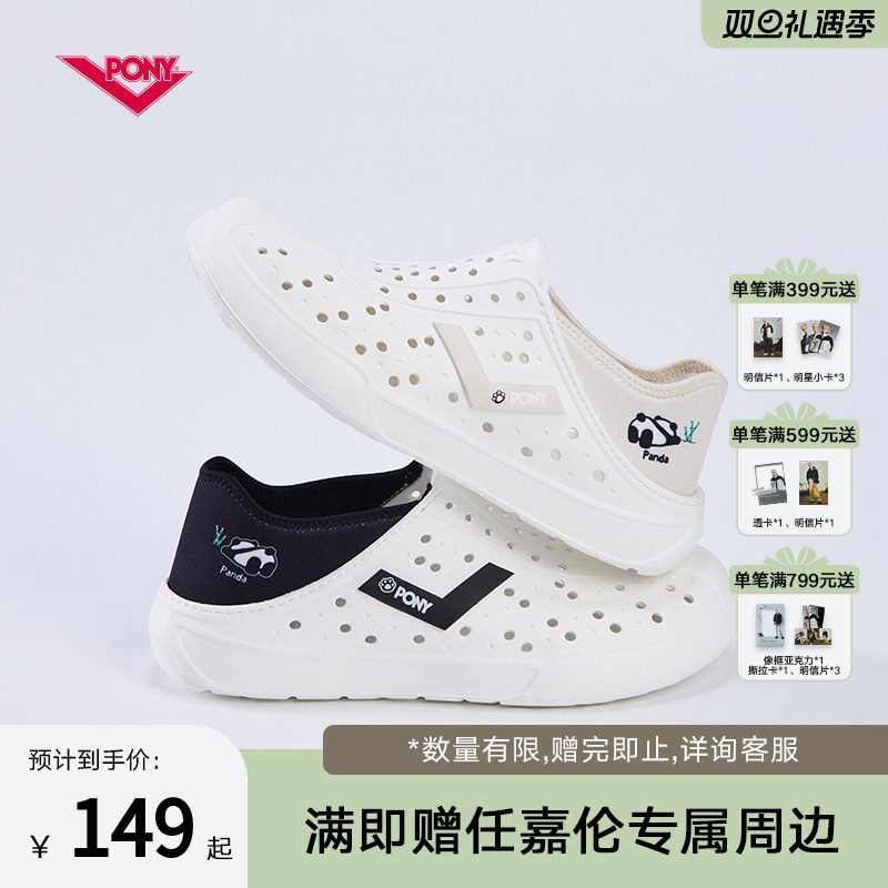 PONY春夏沙滩男女凉拖鞋ENJOY休闲大熊猫防滑一脚蹬凉鞋洞洞鞋