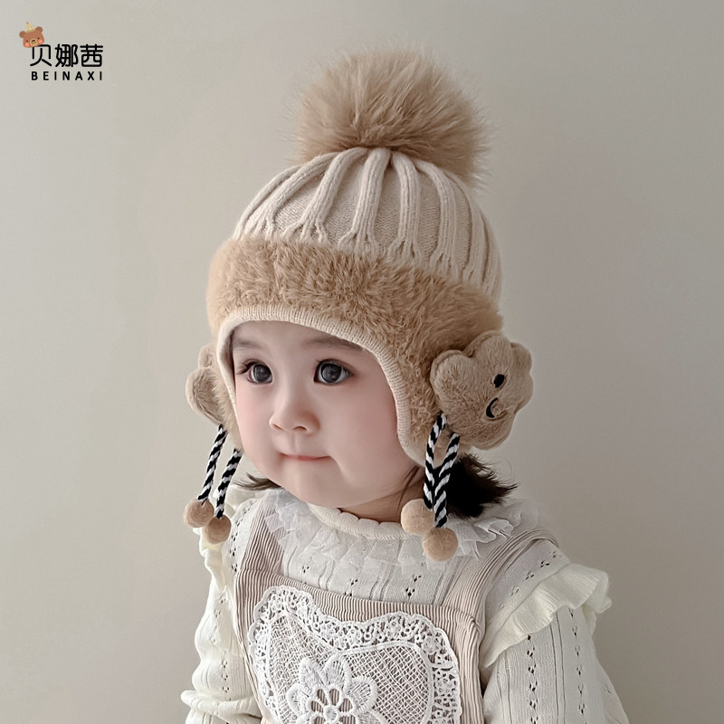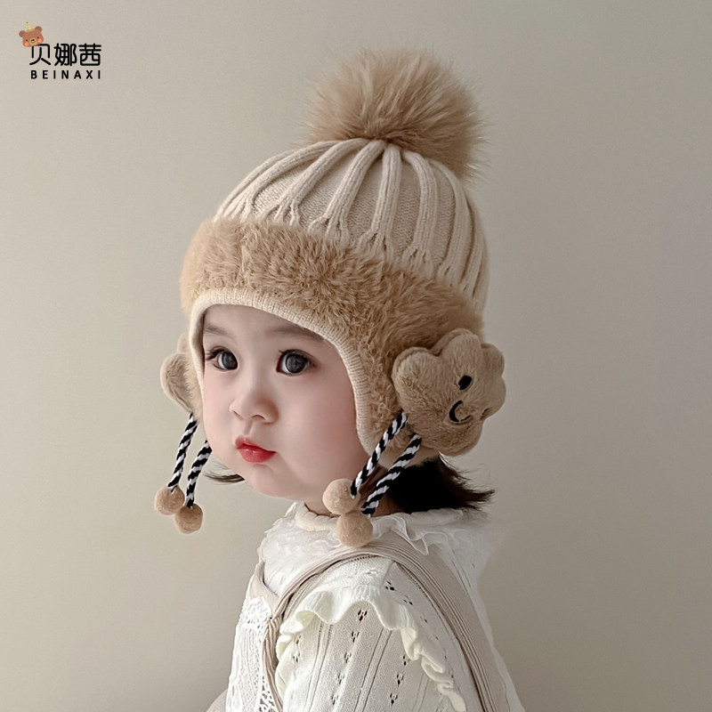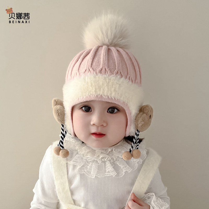 婴儿帽子秋冬季宝宝针织帽儿童男童加厚护耳帽小月龄婴幼儿毛线帽