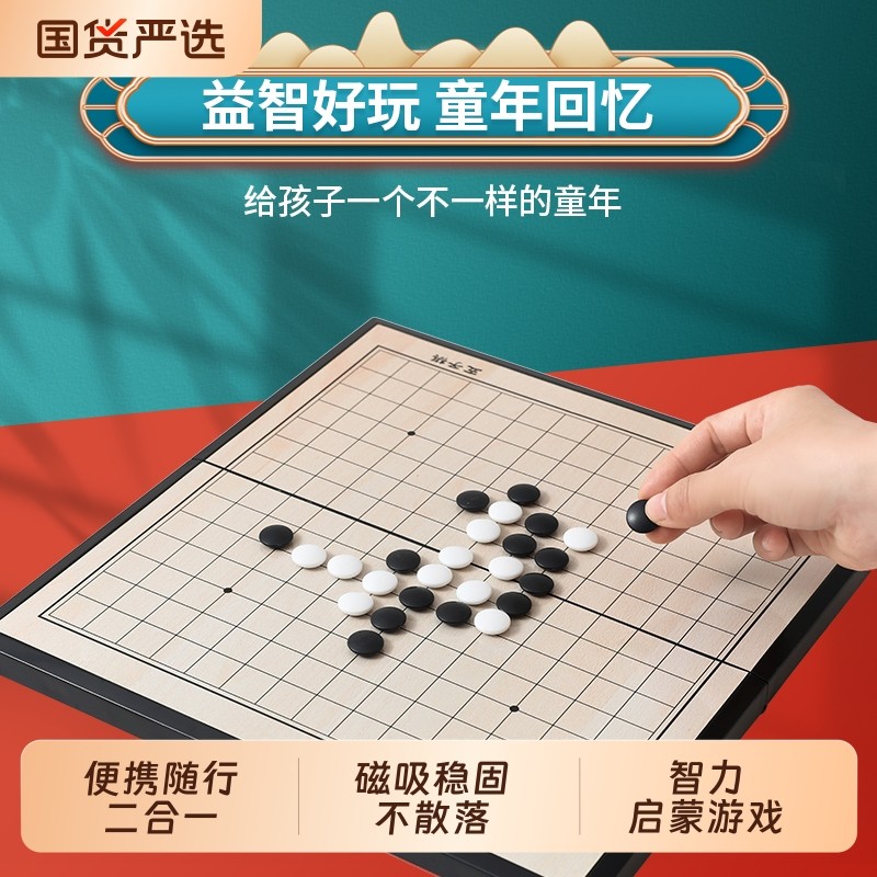 磁性象棋围棋二合一五子棋正品跳棋大号国际儿童棋盘套装棋子益智