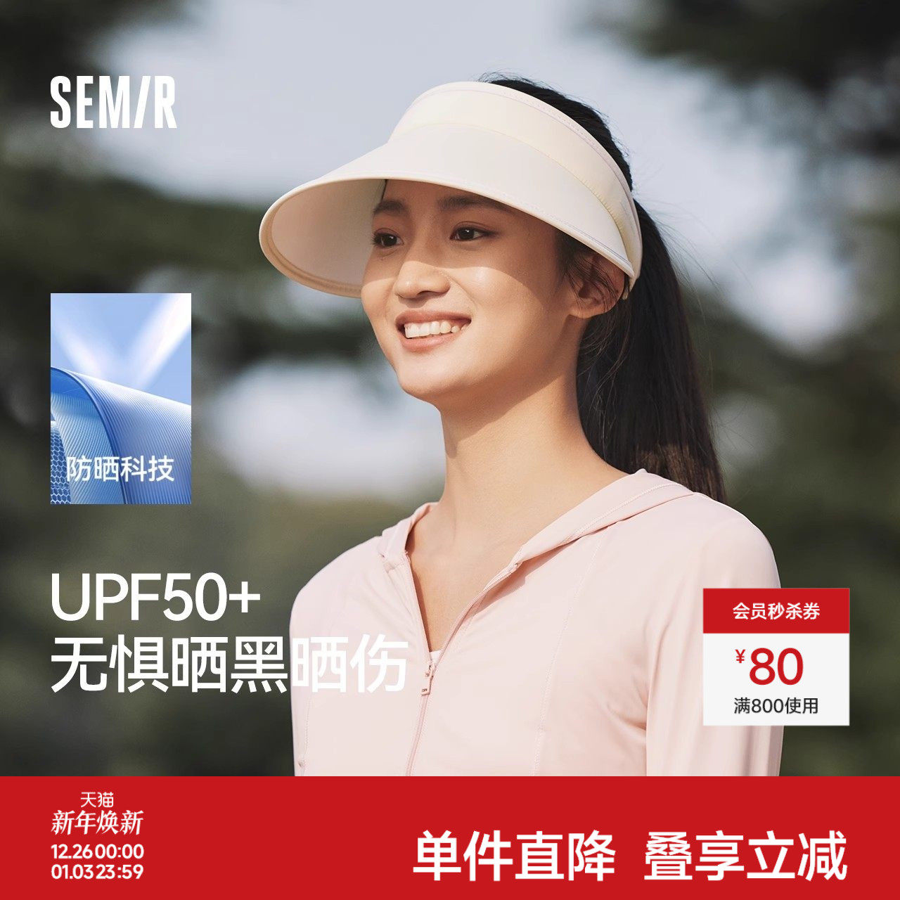 森马帽子女生新款时尚硬核遮阳防晒帽大帽檐显脸小校园运动空顶帽