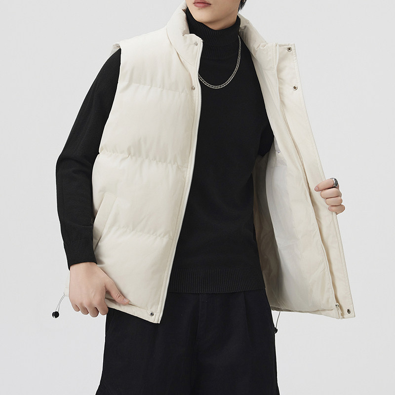 日系复古半袖潮牌羽绒棉马甲外穿男秋冬加厚棉衣宽松保暖坎肩外套