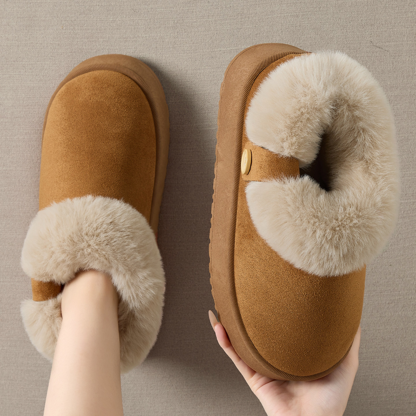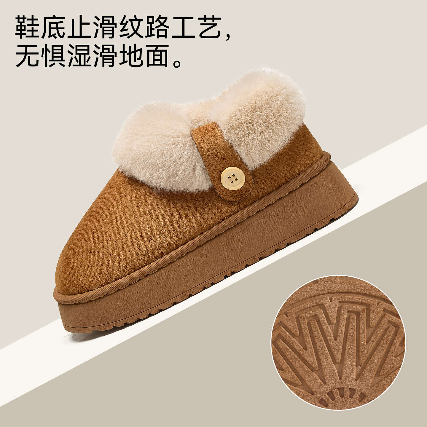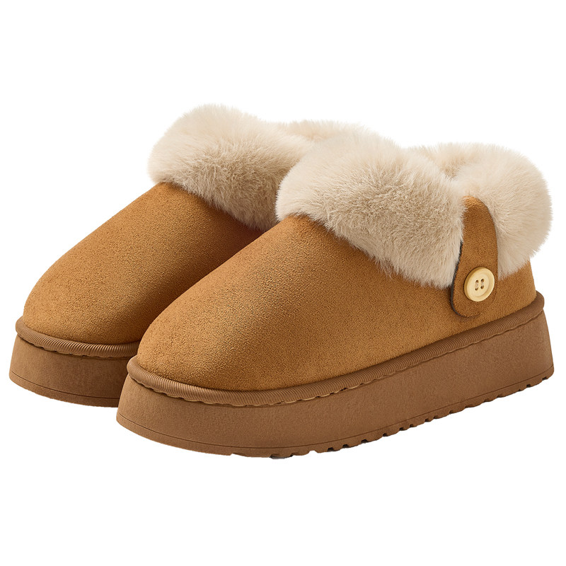 低帮厚底雪地靴女2025新款冬季懒人一脚蹬毛毛棉鞋加绒加厚女鞋子