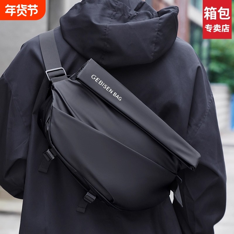 斜挎包男士单肩包背包2025新款胸包骑行车腰包通勤便携磁吸扣防水