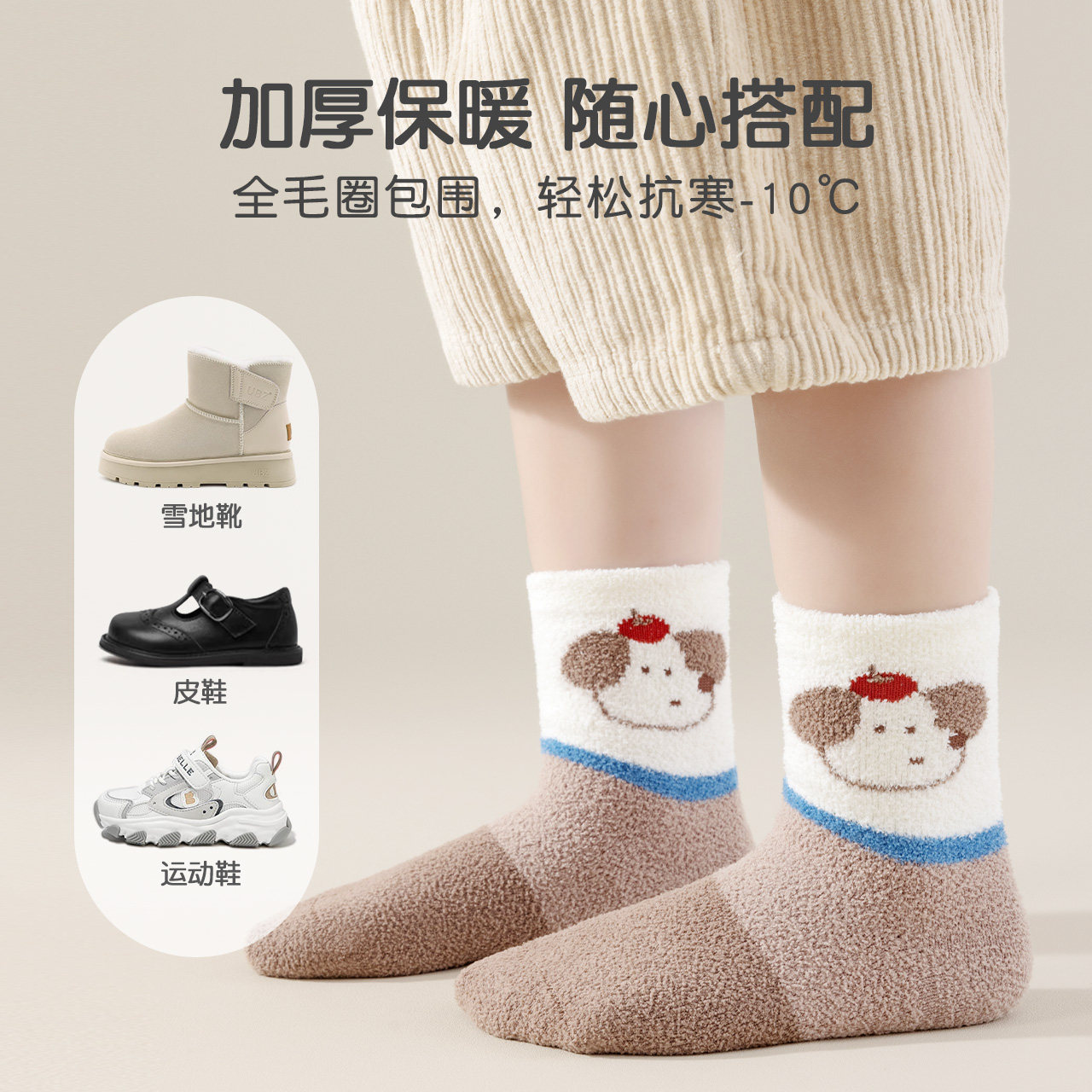 caramella男童秋冬袜子加厚保暖儿童袜子男孩宝宝可爱卡通中筒袜