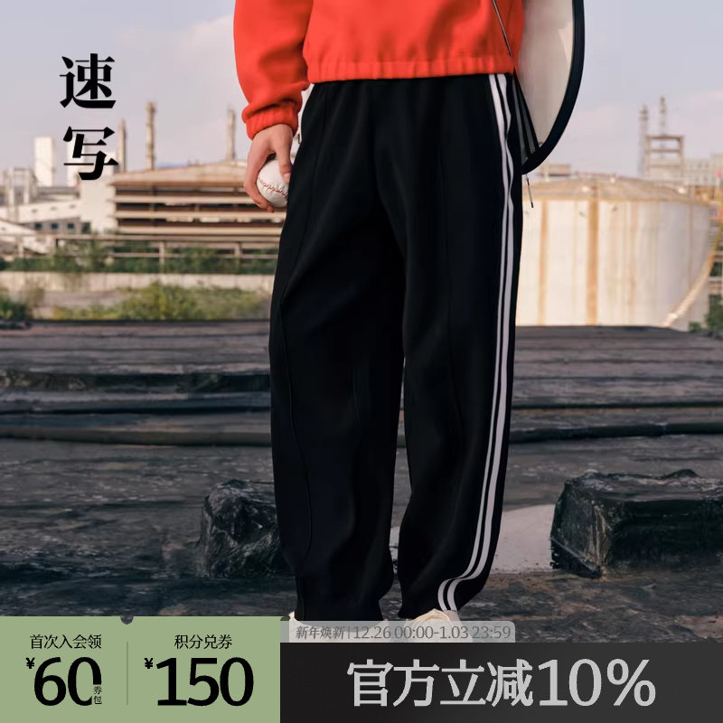 速写奥莱outlets男装秋冬新品男士裤子休闲裤宽松运动感弯刀裤