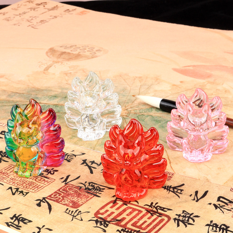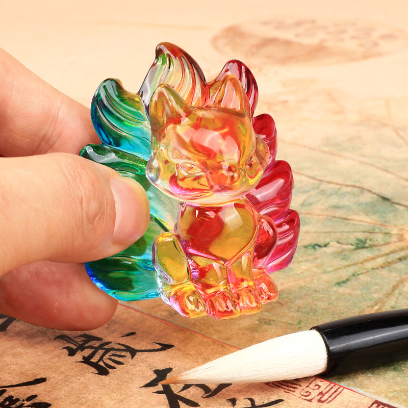 九尾狐水晶玻璃镇纸琉璃镇尺书法毛笔用压纸练字专用创意柿子压纸家居装饰摆件创意水晶南瓜笔搁笔架文房四宝