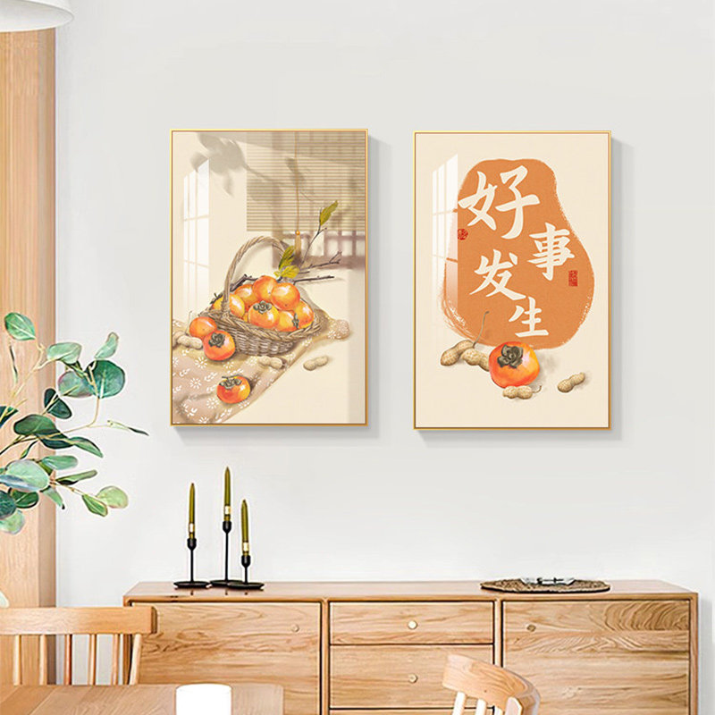 2026新中式餐厅新款装饰画组合饭厅挂画小清新餐桌背景墙壁画