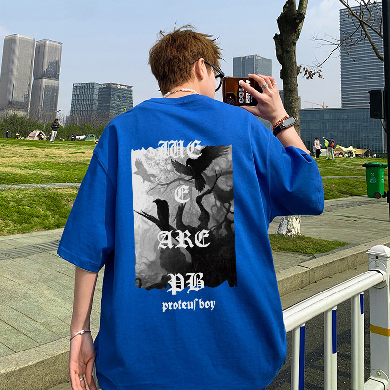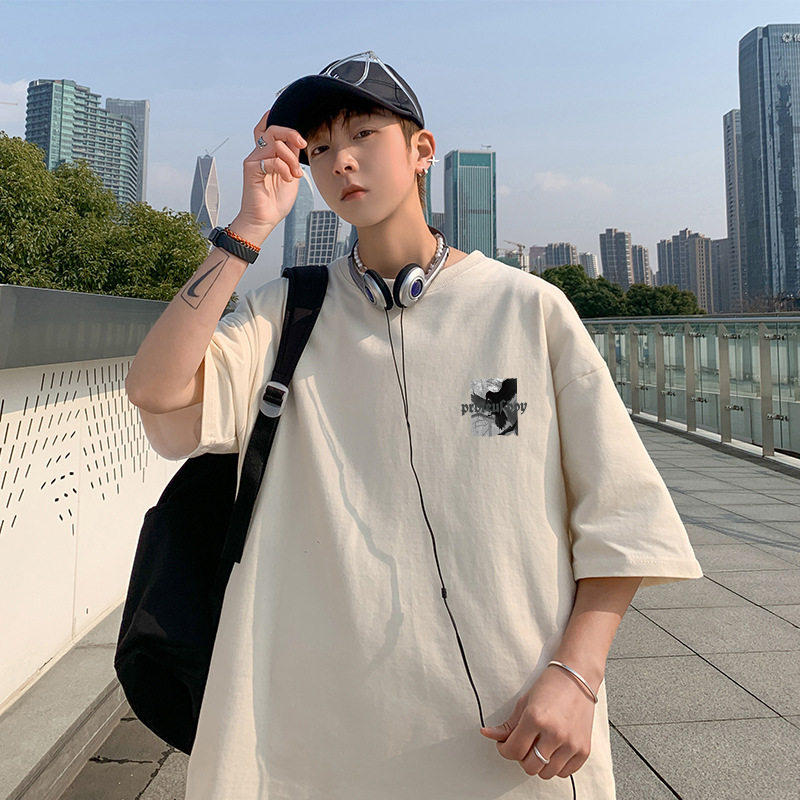 短袖t恤男款夏季美式街头复古字母印花男生上衣服潮流宽松体半袖T
