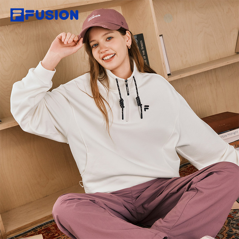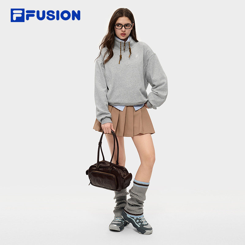 FILA FUSION斐乐潮牌女套头红色卫衣2026春季新年款针织长袖上衣