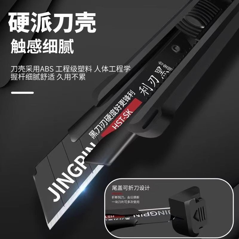 重型美工刀大号加厚壁纸刀电工专用快递开箱裁纸切割刀介刀五刀片锋利耐用高颜值黑刃神器18mm多功能高碳钢