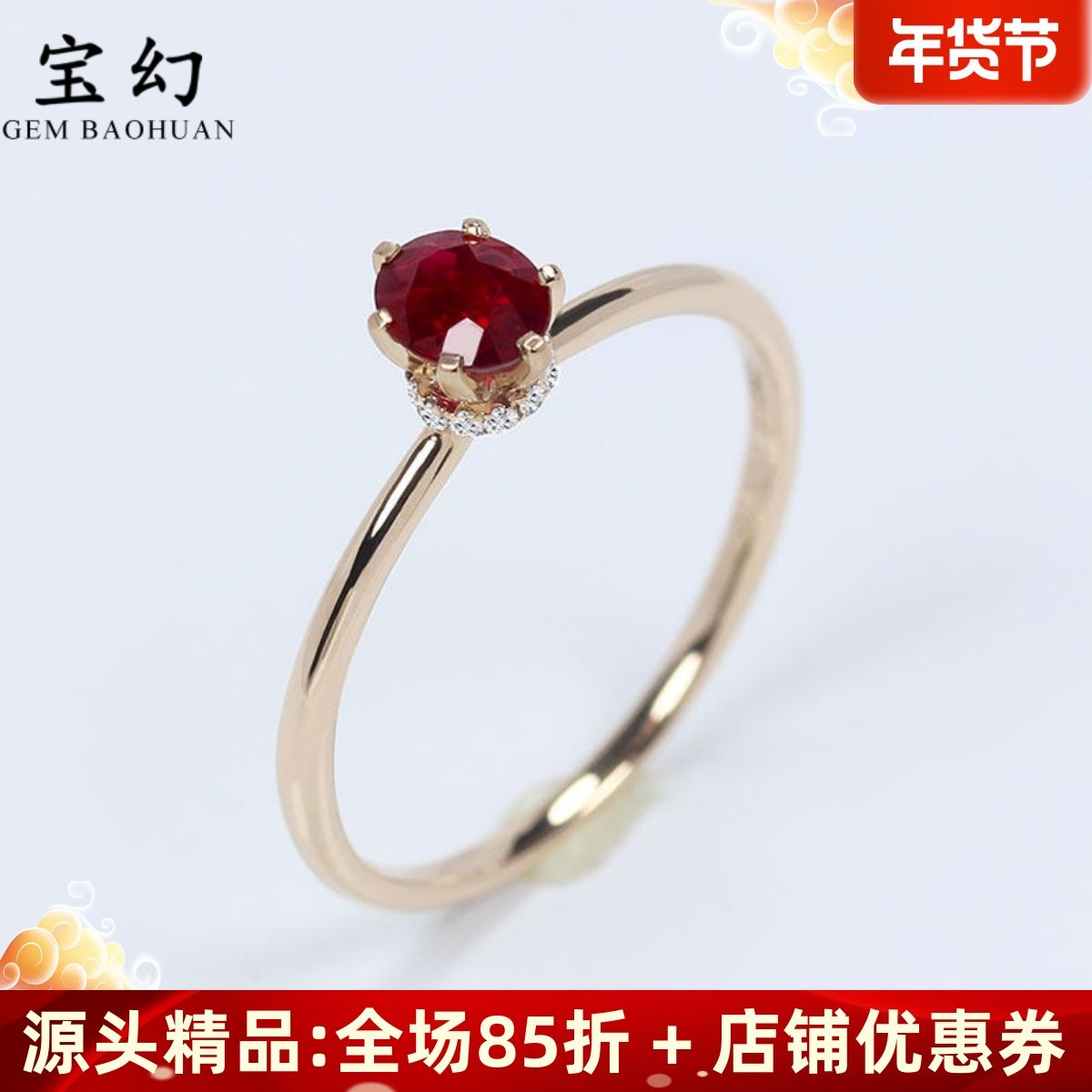 18K玫瑰金天然鸽血红宝石六爪王冠戒指 钻石简约舒适指环女款戒圈