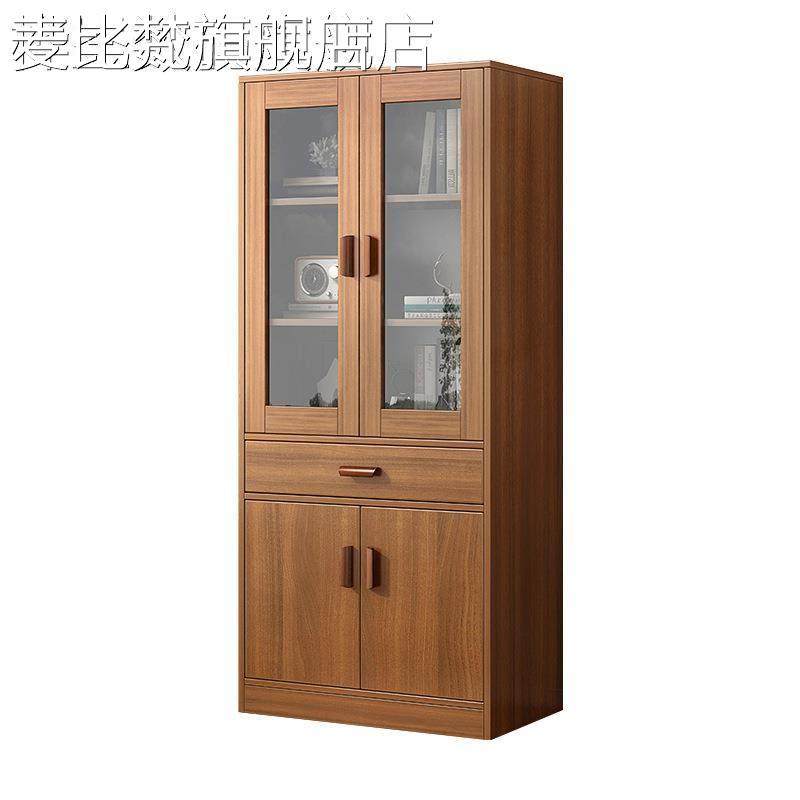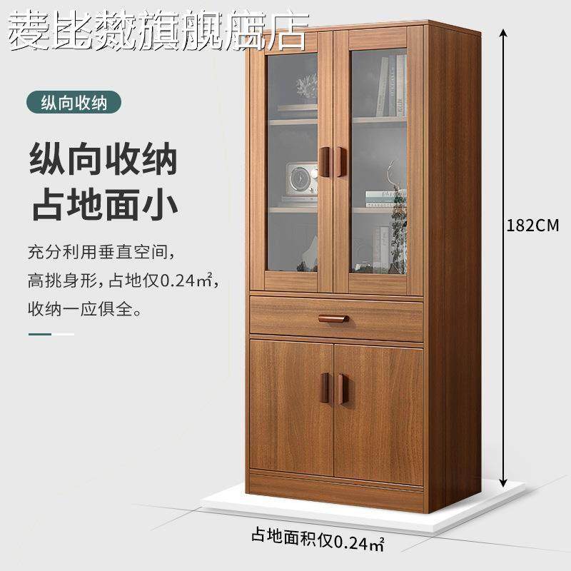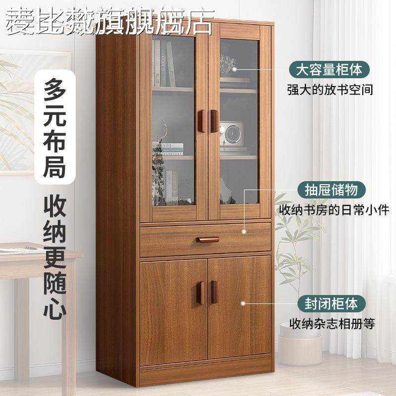 麦比梵书柜带玻璃门客厅储物柜靠墙组合书架收纳柜一体木质高柜子置物床笠拉车