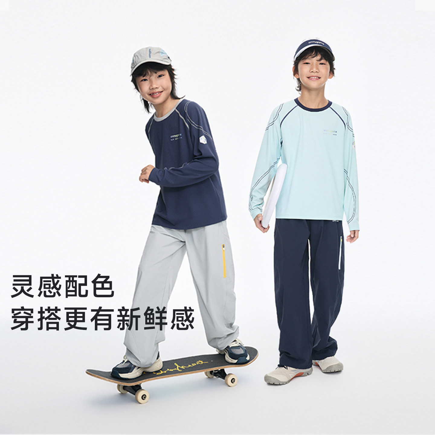 特步童装男童速干长袖T恤2025秋冬新款儿童防晒上衣中大童运动长t