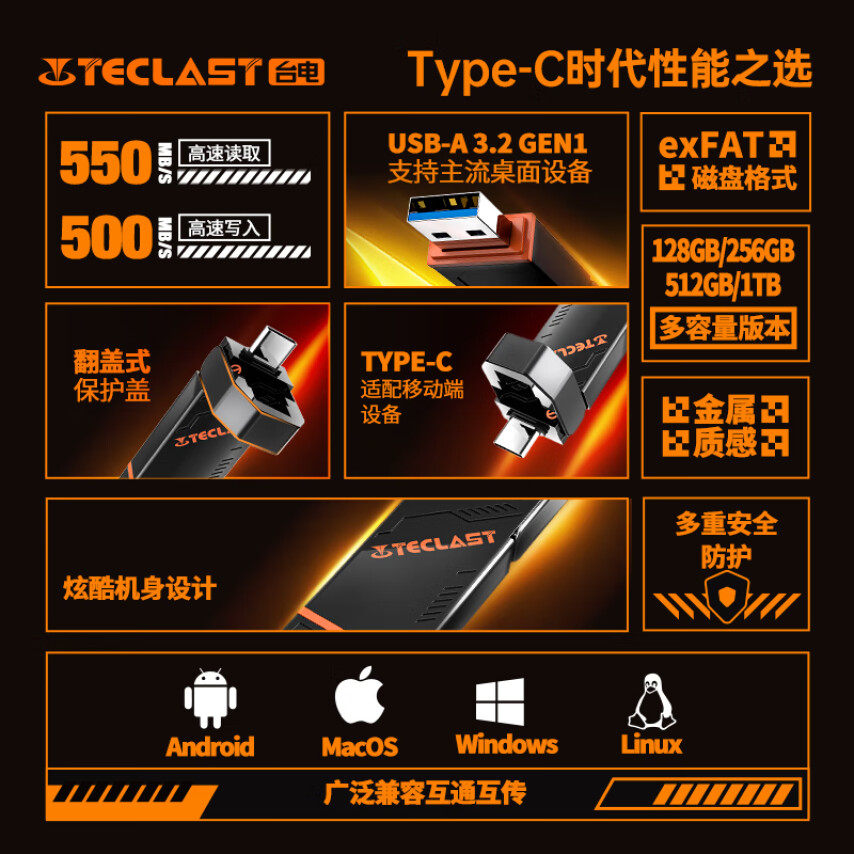 台电固态u盘1t高速Type-C双接口华为手机电脑两用优盘大容量正品