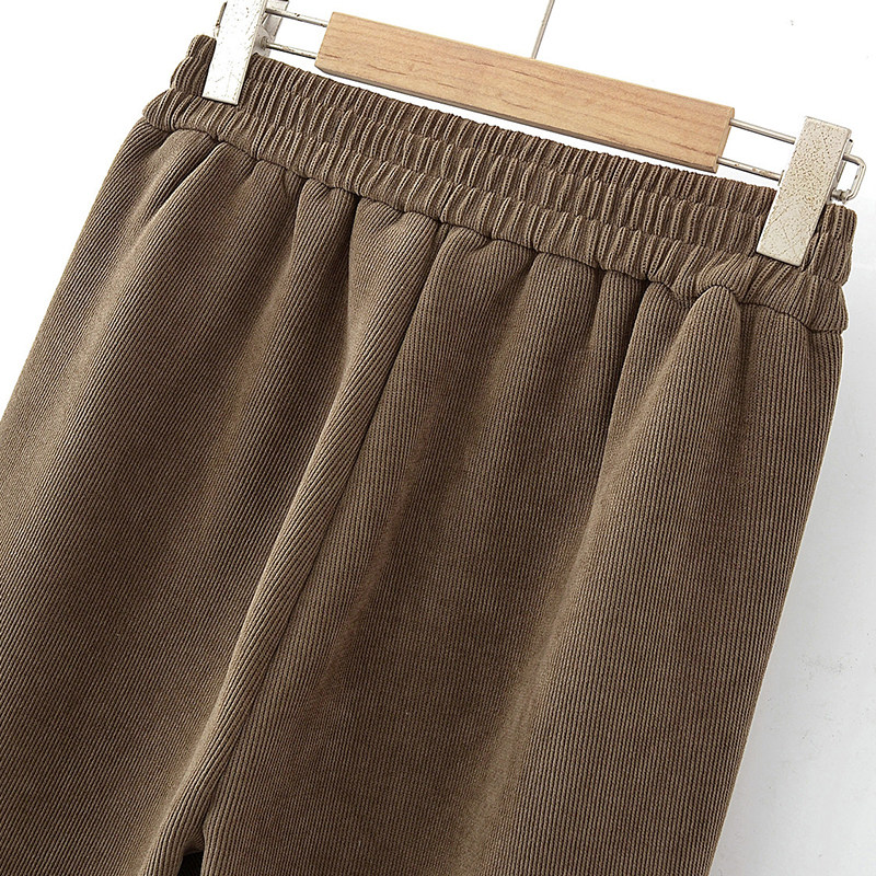 妈妈秋冬灯芯绒裤子洋气微喇叭阔腿裤加绒加厚宽松中老年女裤直筒