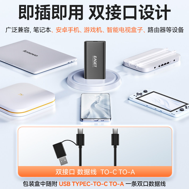 忆捷固态移动硬盘1t手机电脑两用外置外接2tb大容量便携SSD高速盘