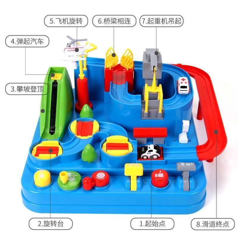 汽车大冒险闯关轨道车停车场警车消防车儿童男益智玩具小车合金