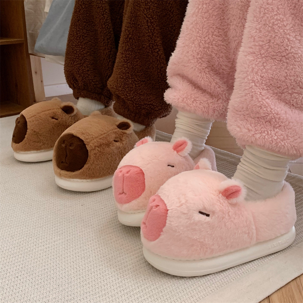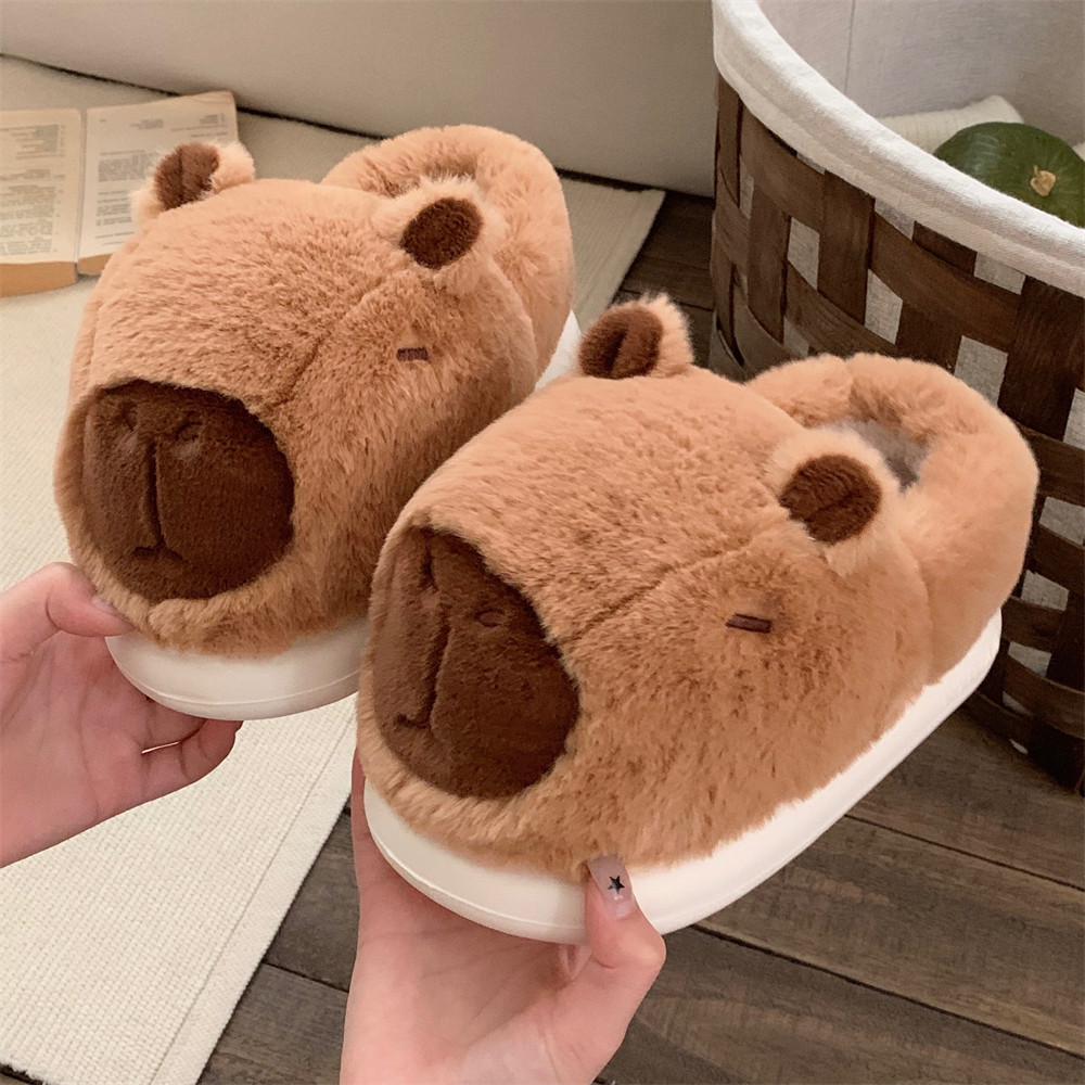 细细条 软底保暖毛绒家居鞋亲子冬季可爱卡皮巴拉水豚棉拖鞋男女