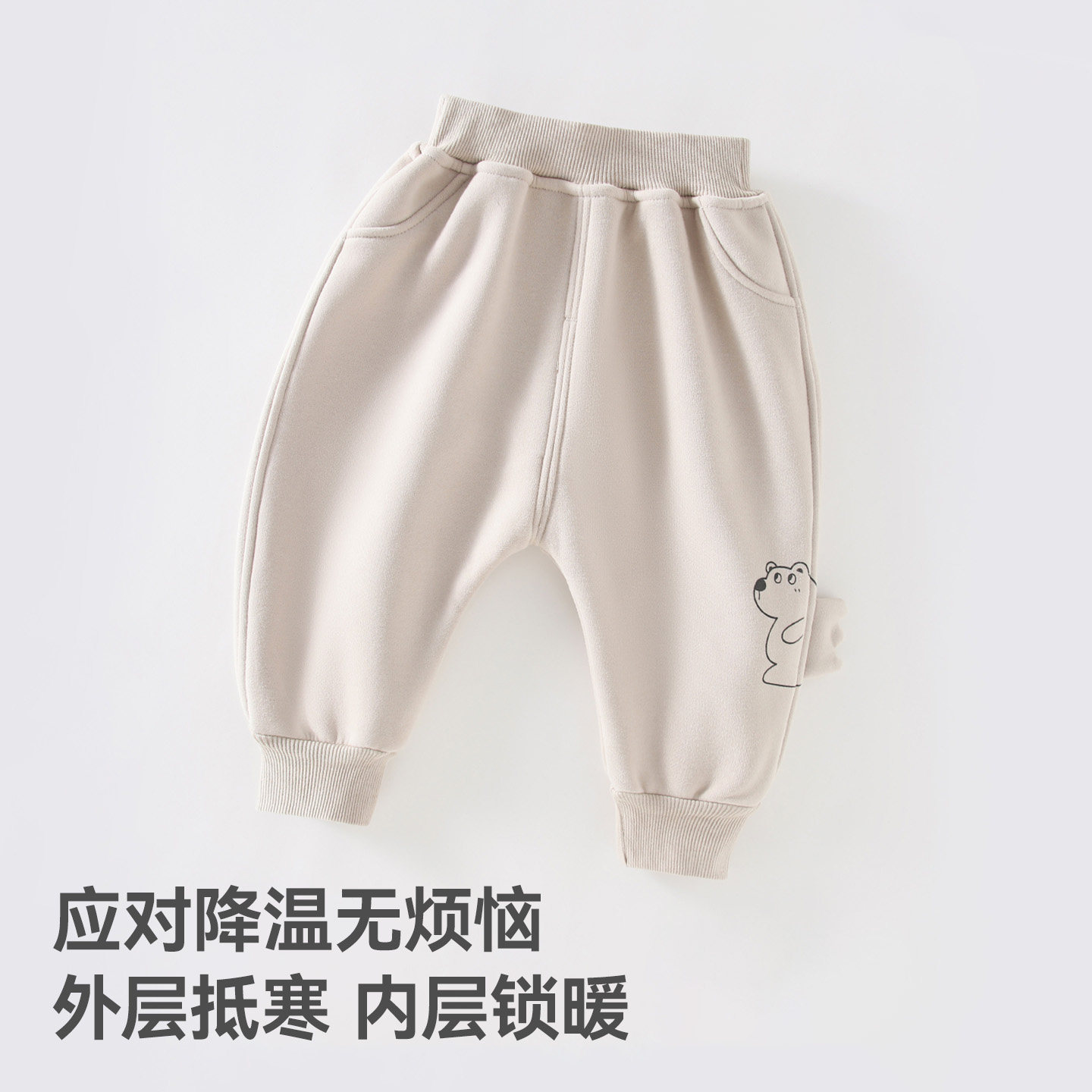 贝肽斯儿童裤子秋冬加绒卫裤2026新款男女童装宝宝保暖束口长裤S