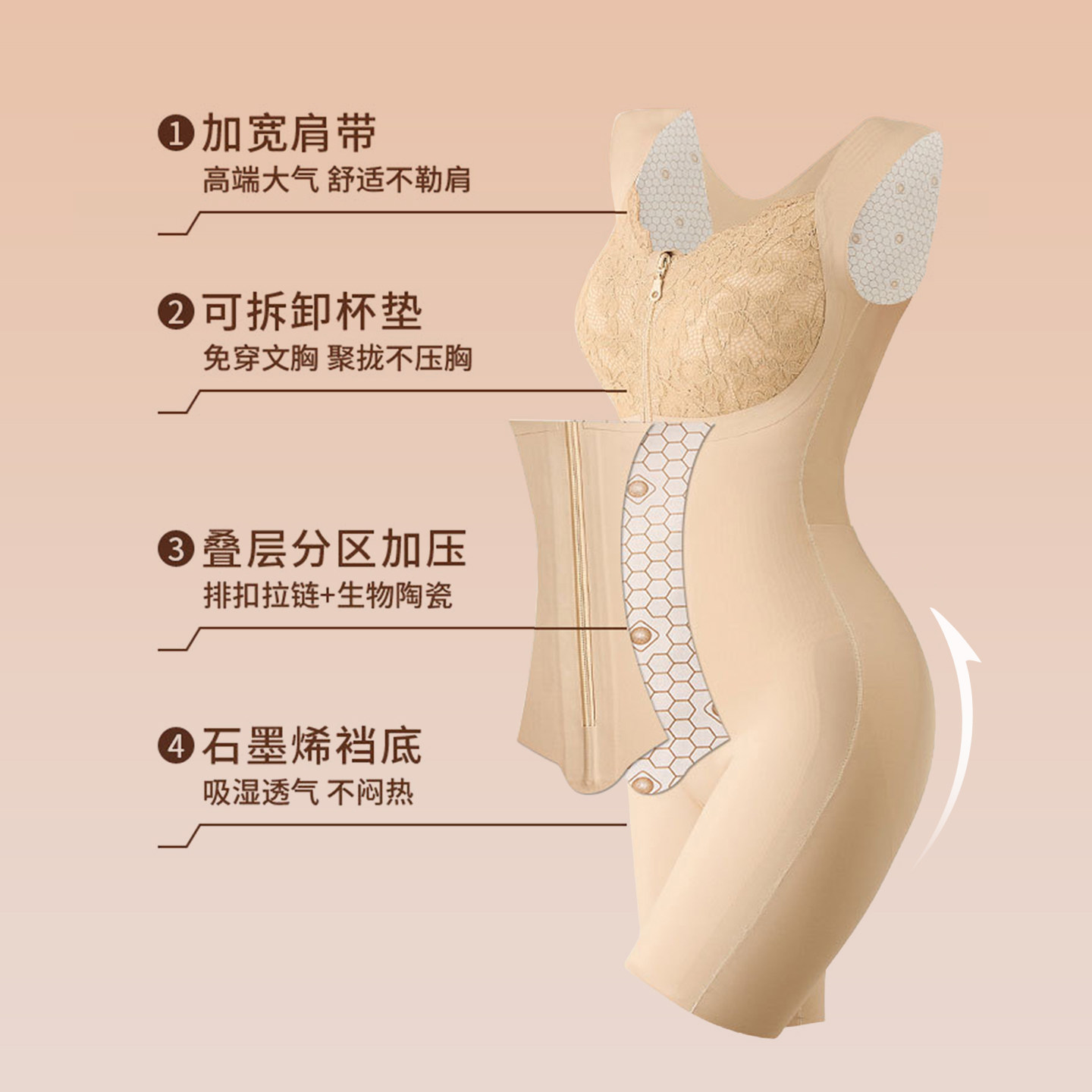 曲线主义蕾丝拉链塑身连体衣女显瘦收腹提臀塑形内衣美体紧身衣