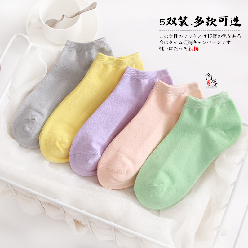 春夏棉袜低帮浅口女士短袜纯色卡通糖果色可爱日系袜子女短筒船袜