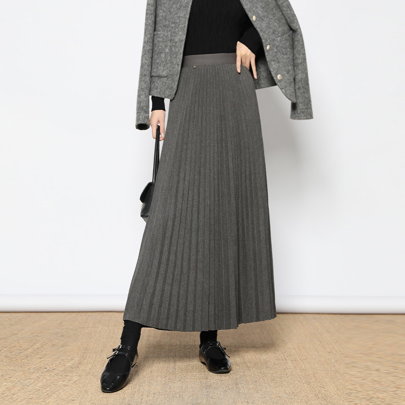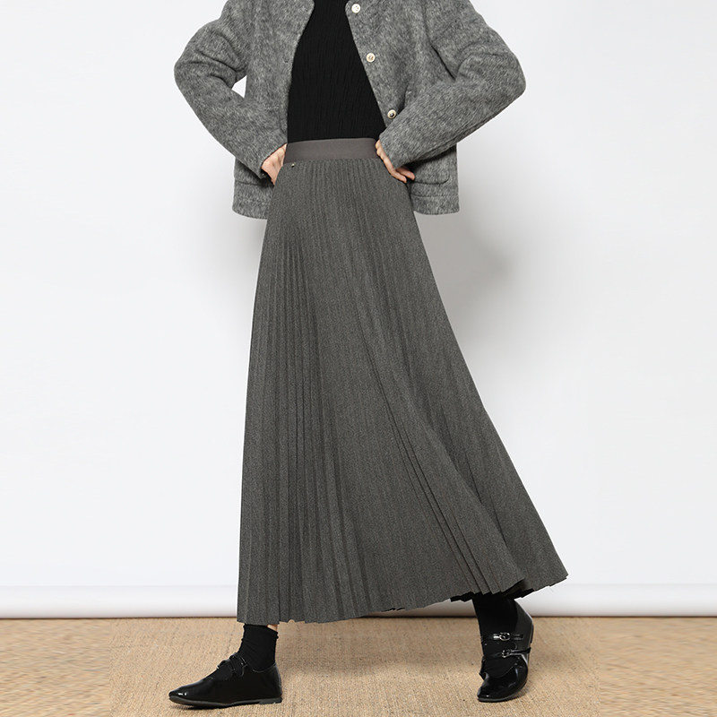 白鹿语高腰纯色立体褶皱半裙25冬款时尚橡筋腰厚款女式半身裙