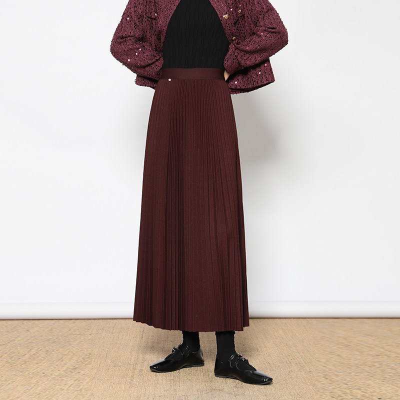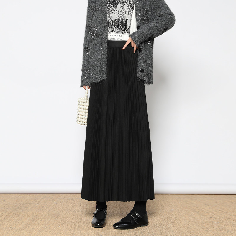 她池松紧腰百褶裙2025秋装新款女装时尚简约中长款A字高腰半身裙