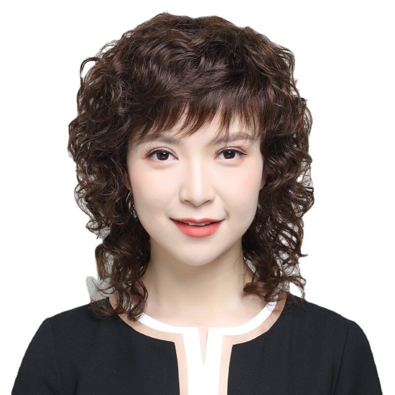 假发女中长卷发全头套女士妈妈真发套全真人发丝自然假头发现货