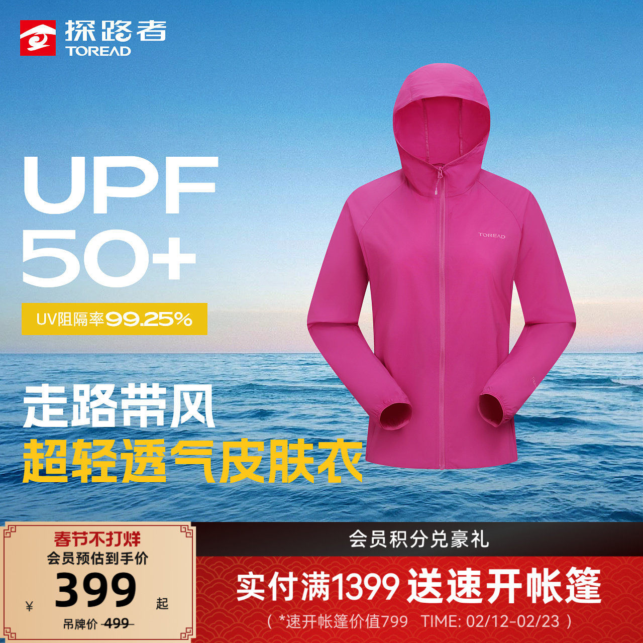 探路者女式皮肤衣UPF50+防紫外线防泼水超轻高弹透气户外防晒衣男