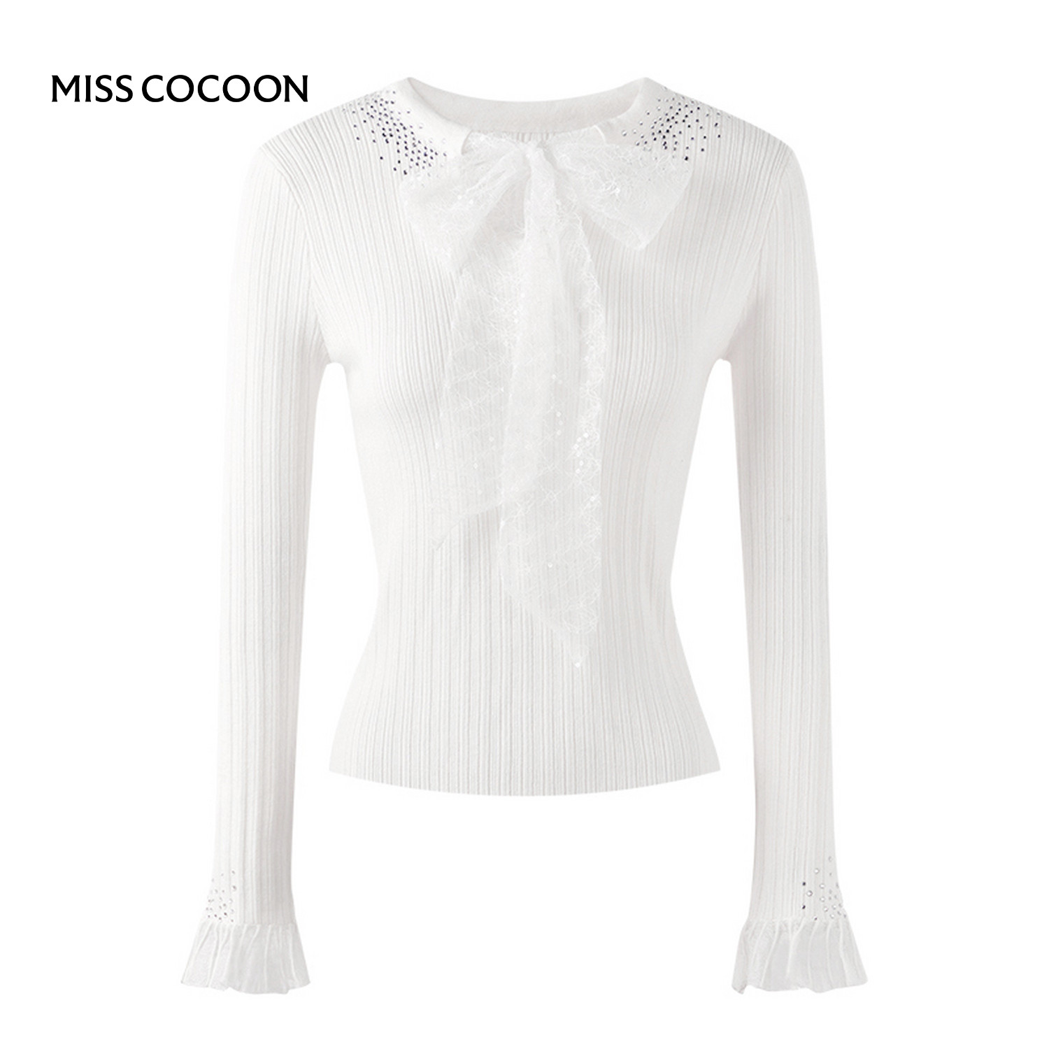 MISSCOCOON可可尼针织衫上衣女2025秋季新款系带蝴蝶结套头打底衫