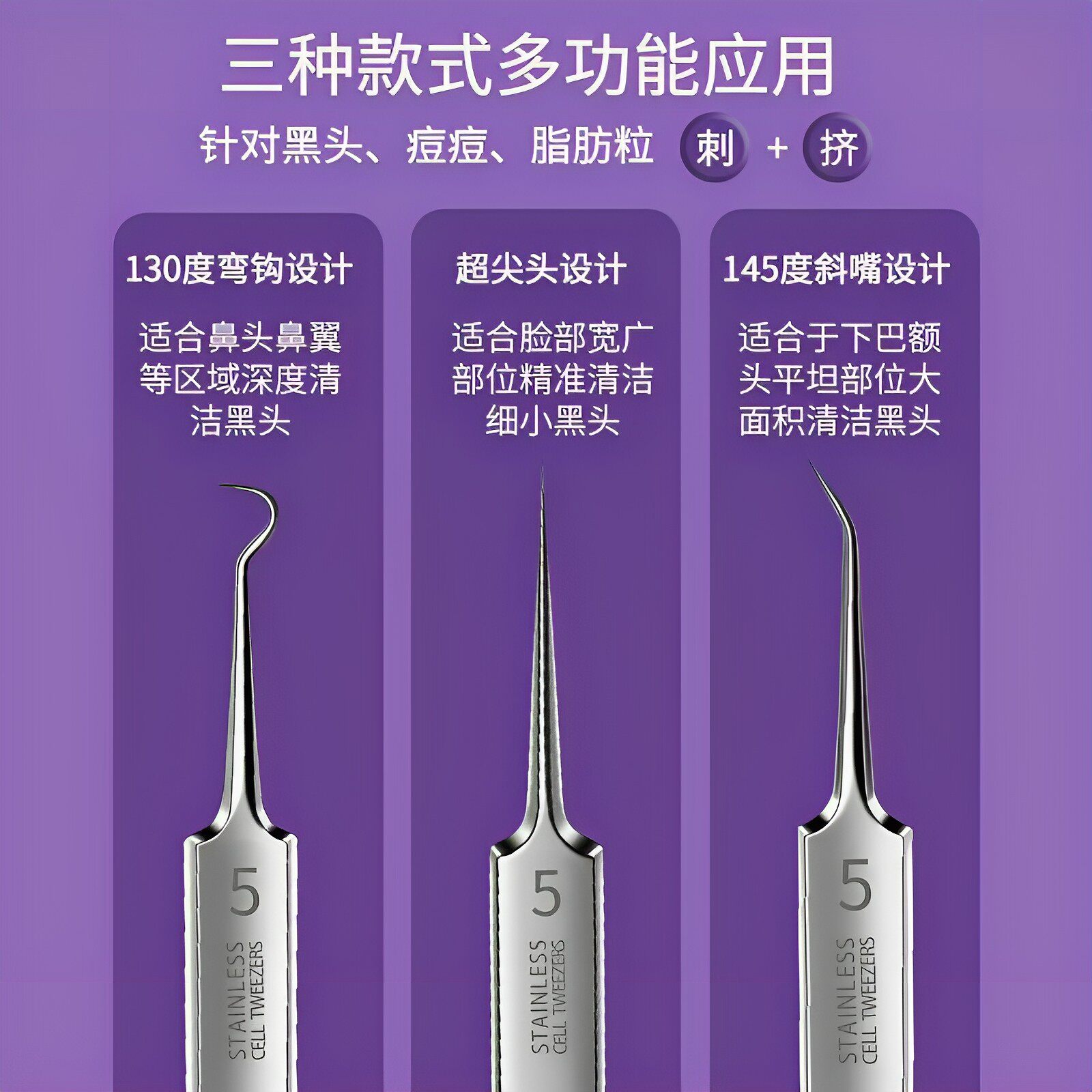 高档美容院细胞夹黑头超细粉刺针高精密镊子套装闭口痘痘清洁工具
