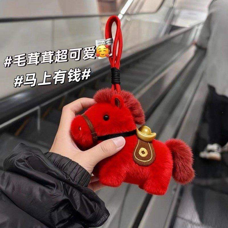 新年礼物马上有钱元宝小马包包挂件毛绒玩偶钥匙扣书包挂饰吉祥物