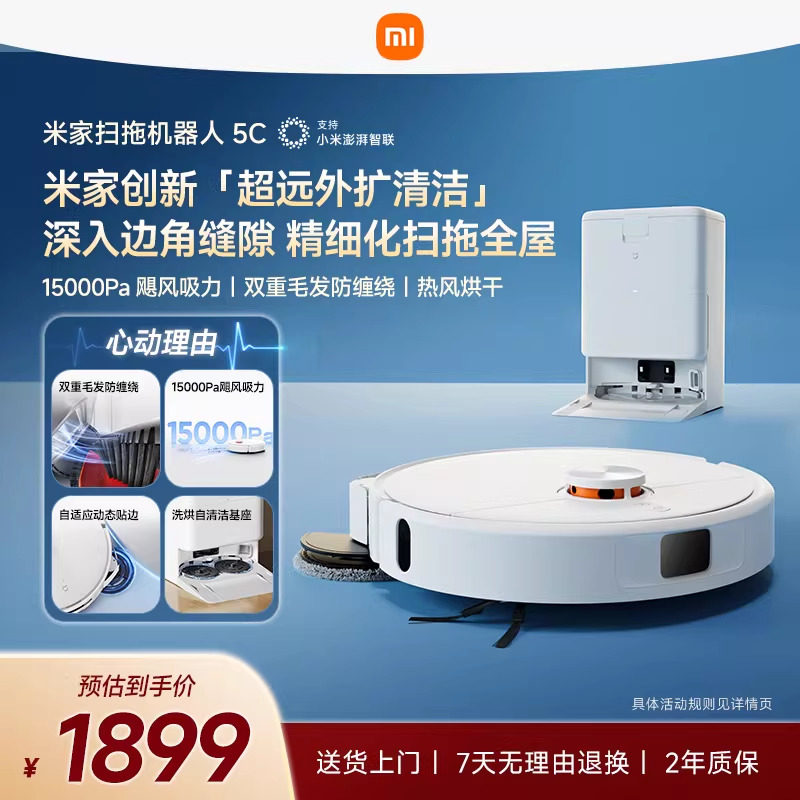 【热销爆款】小米官方米家扫地机器人5C扫地拖地吸尘自清洁一体机