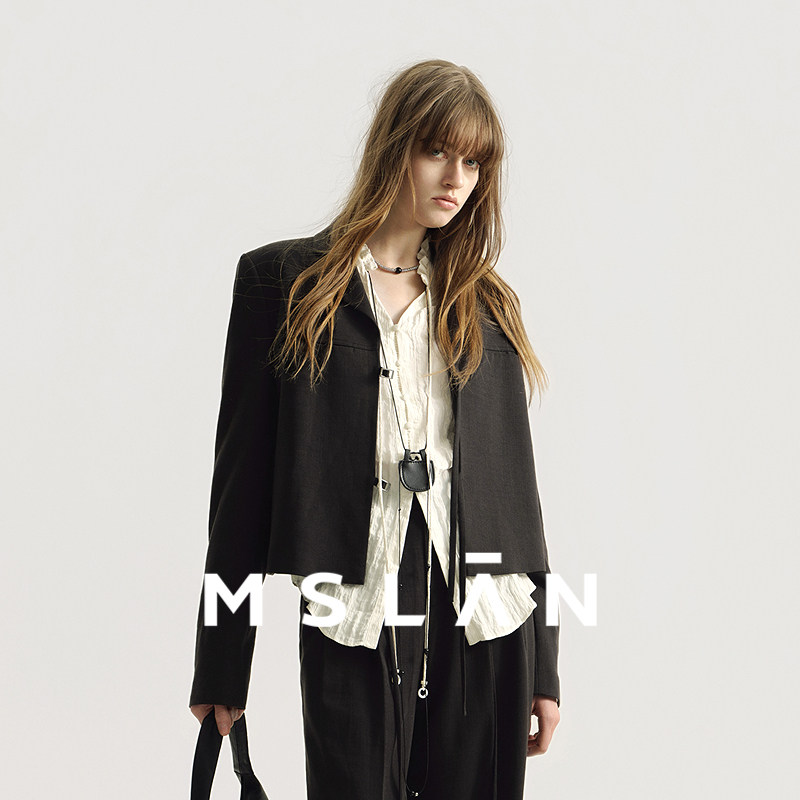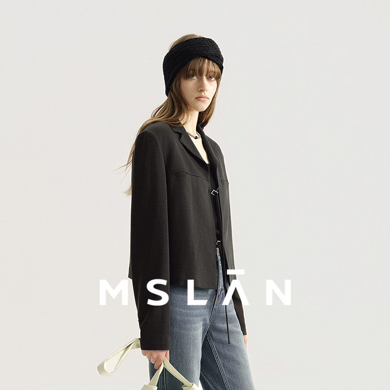 律政女主/MSLAN春季简约气质天丝醋酸截短通勤黑色西装外套小个子