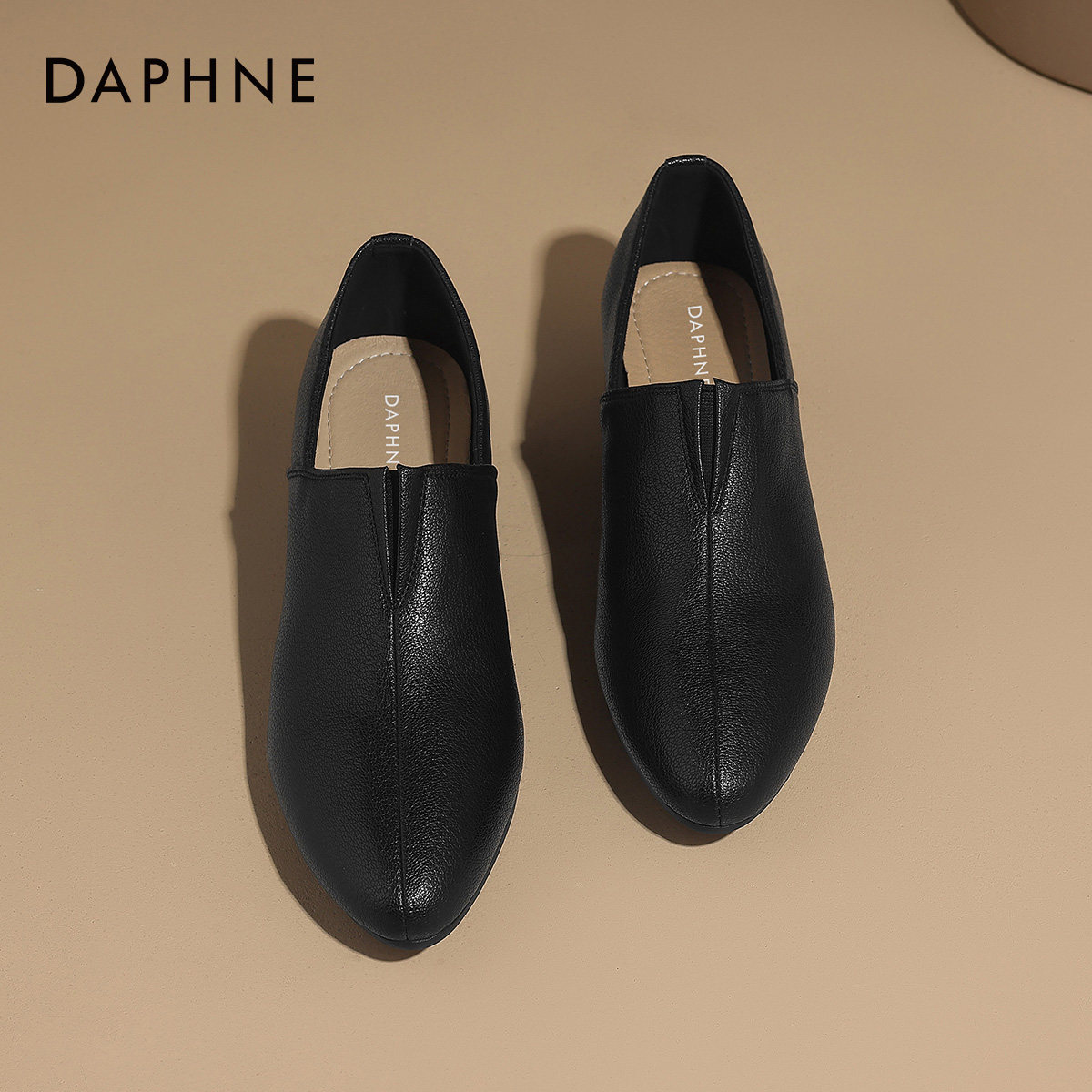 达芙妮深口单鞋2026新款尖头妈妈黑色小皮鞋通勤秋冬女鞋子乐福鞋