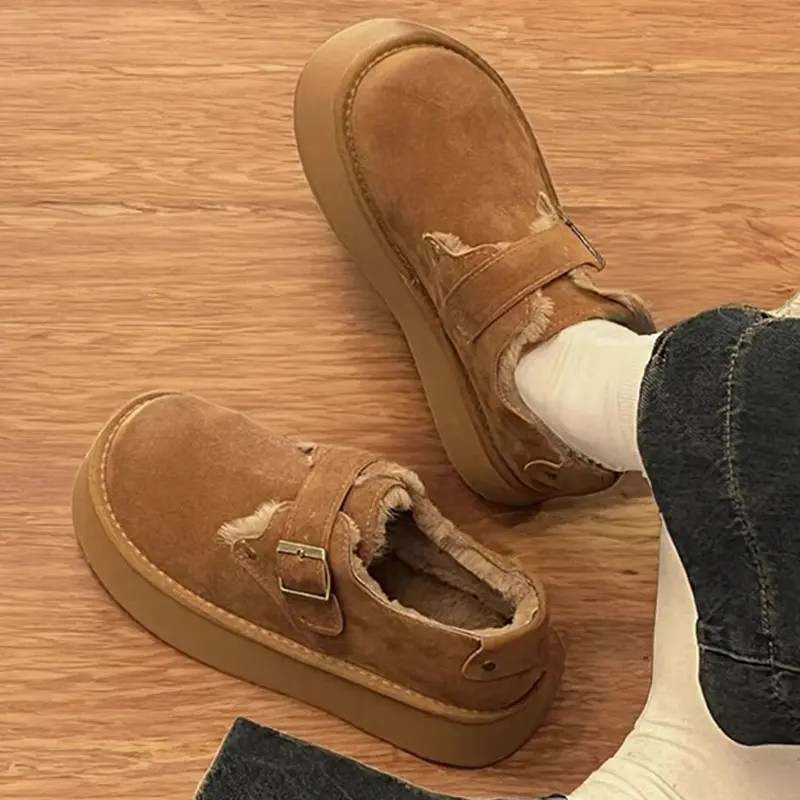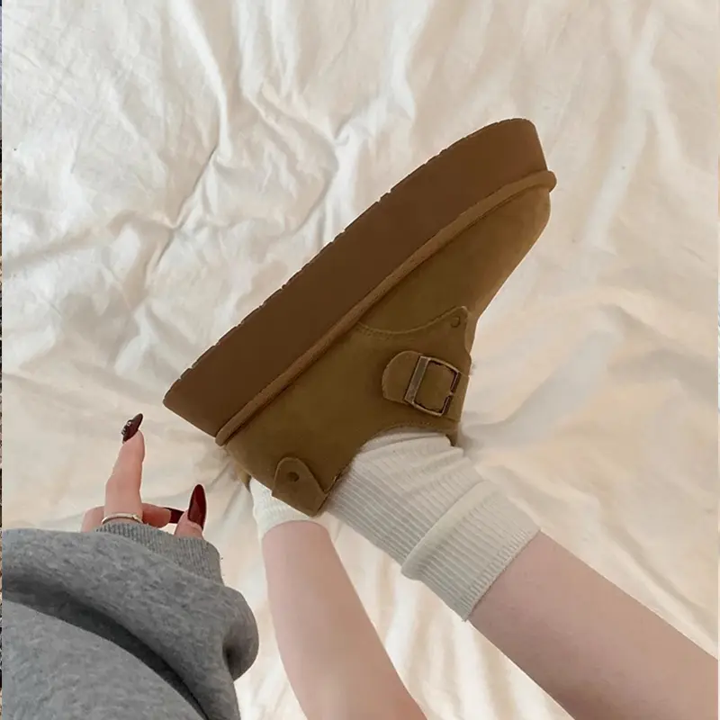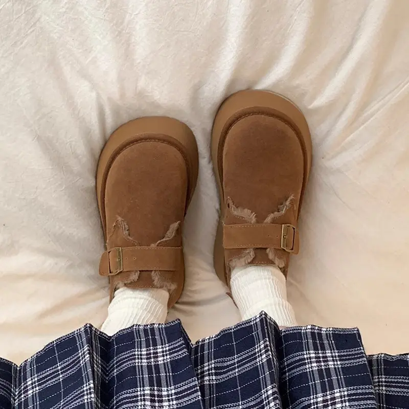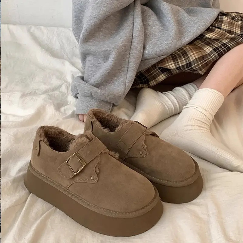 厚底圣诞加绒勃肯鞋女2025秋冬季毛毛乐福鞋博肯棉鞋子雪地靴毛绒
