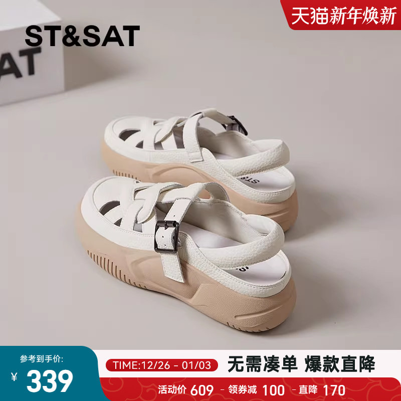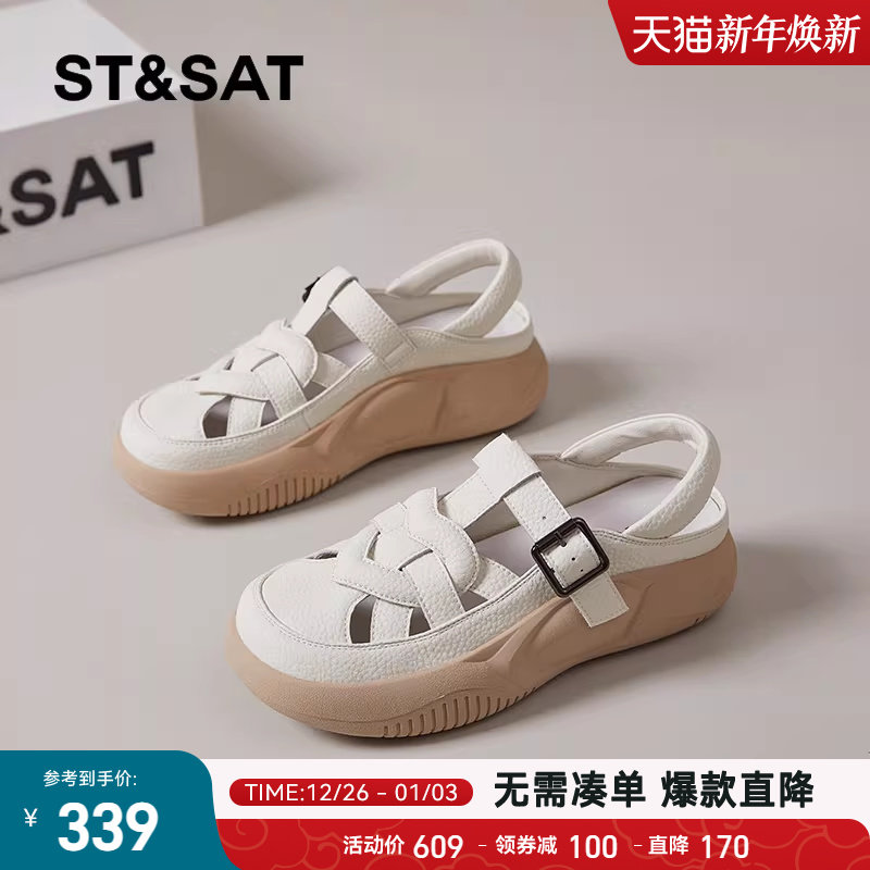 星期六包头猪笼鞋女2025新款外穿镂空罗马凉拖鞋夏季编织厚底凉鞋