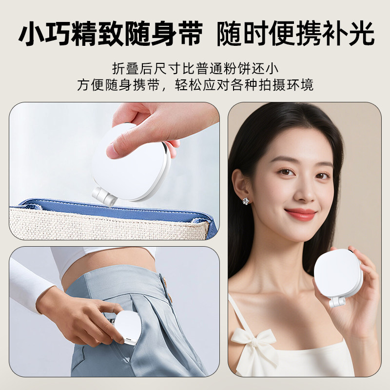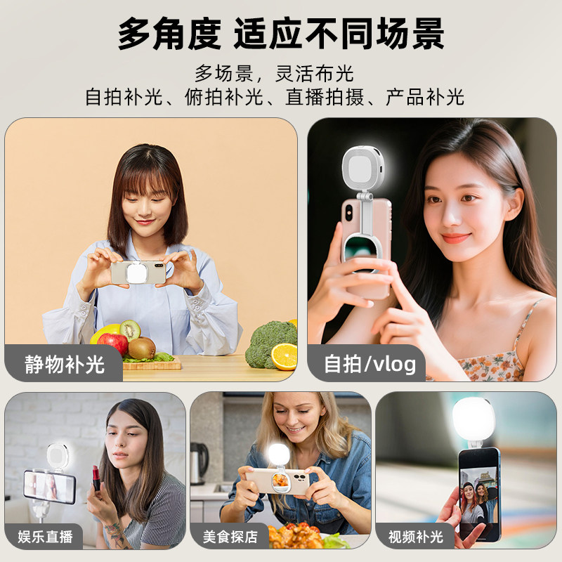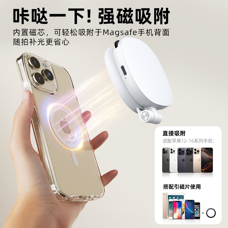 手机磁吸补光灯wonew七彩蜗牛自拍网红直播拍照神器迷你便携镜子可折叠口袋灯magsafe自拍补妆镜旅游拍摄神器