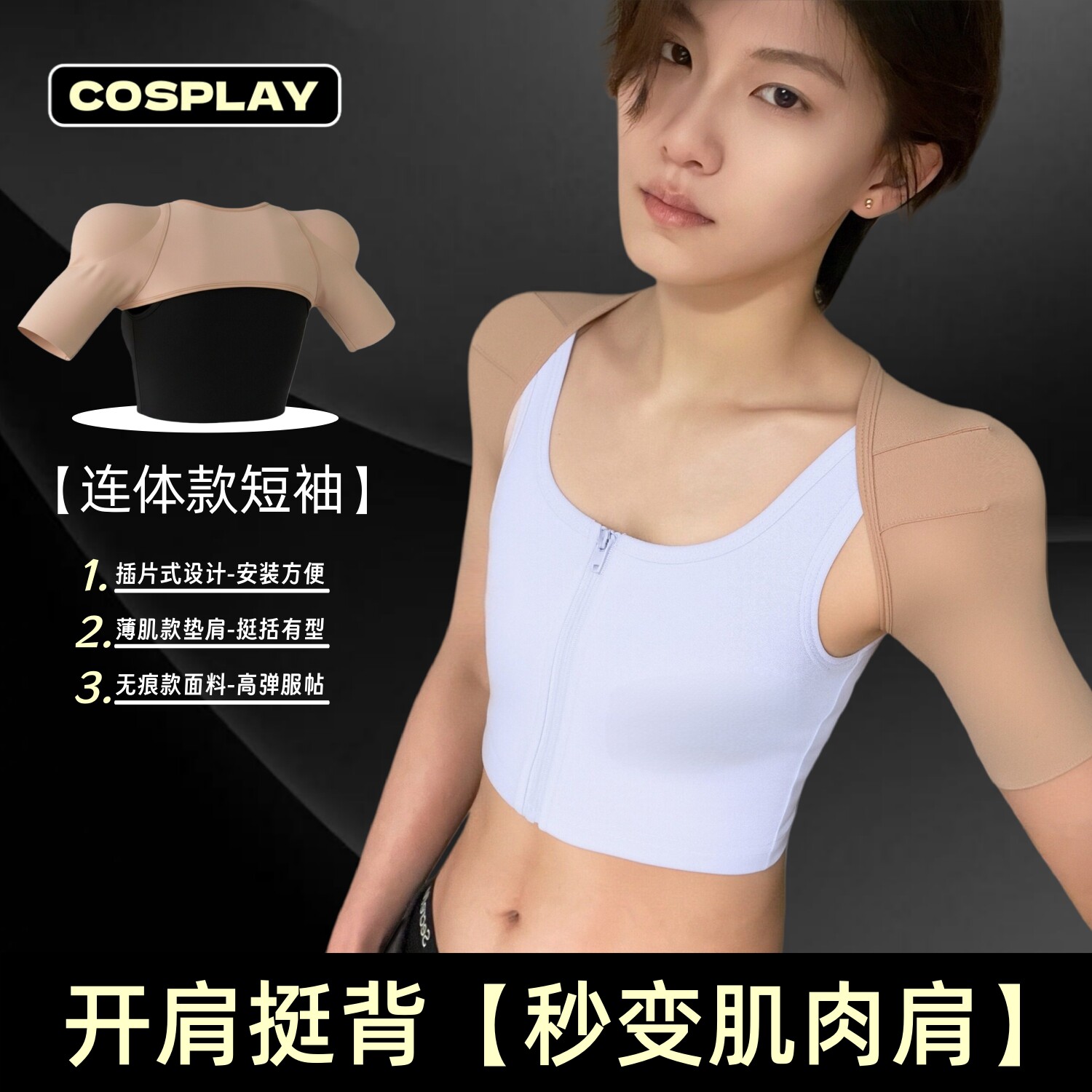 cos专用连体短袖肌肉垫肩束胸衣扩肩开背大胸显小秒变宽肩倒三角