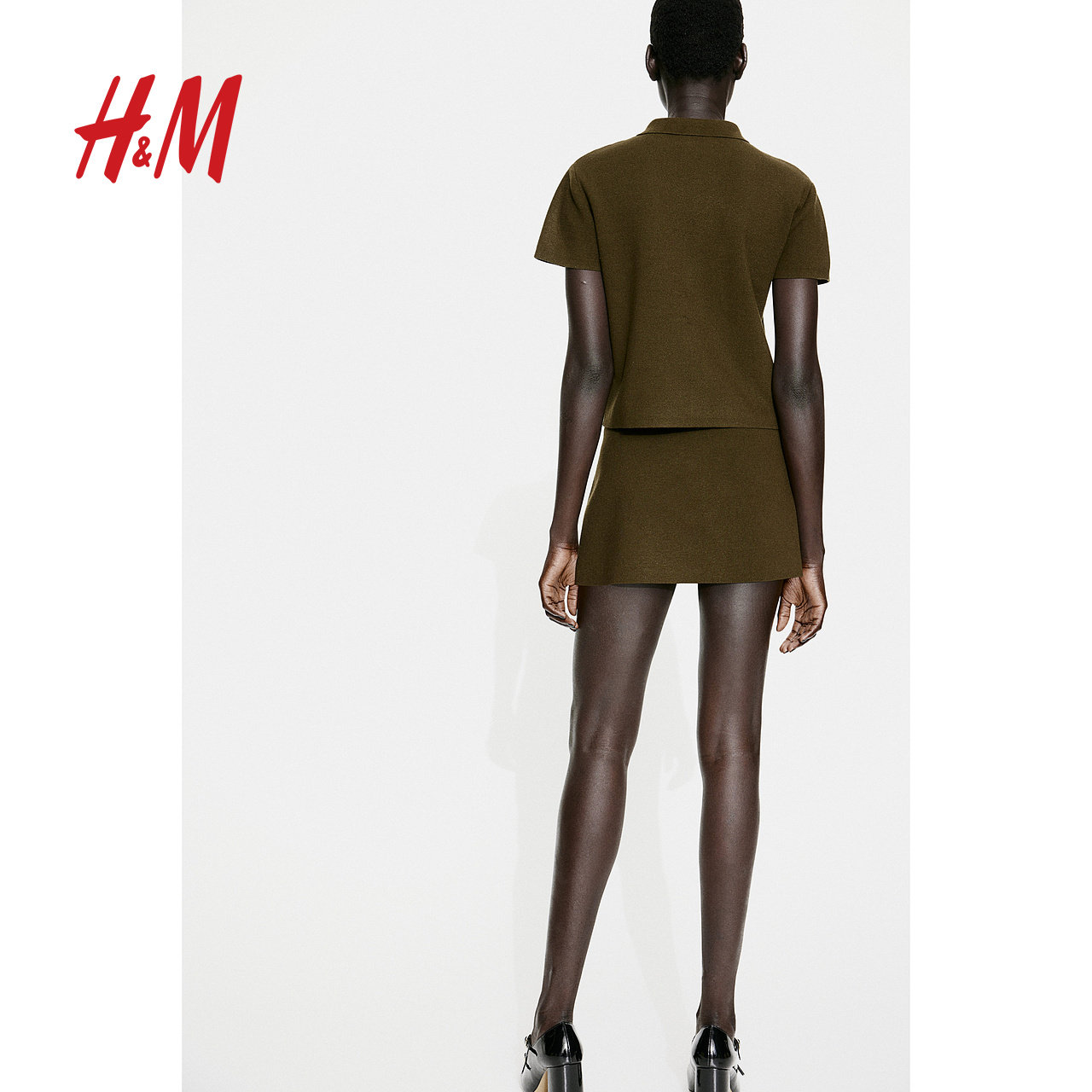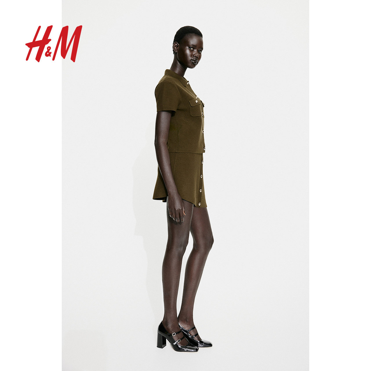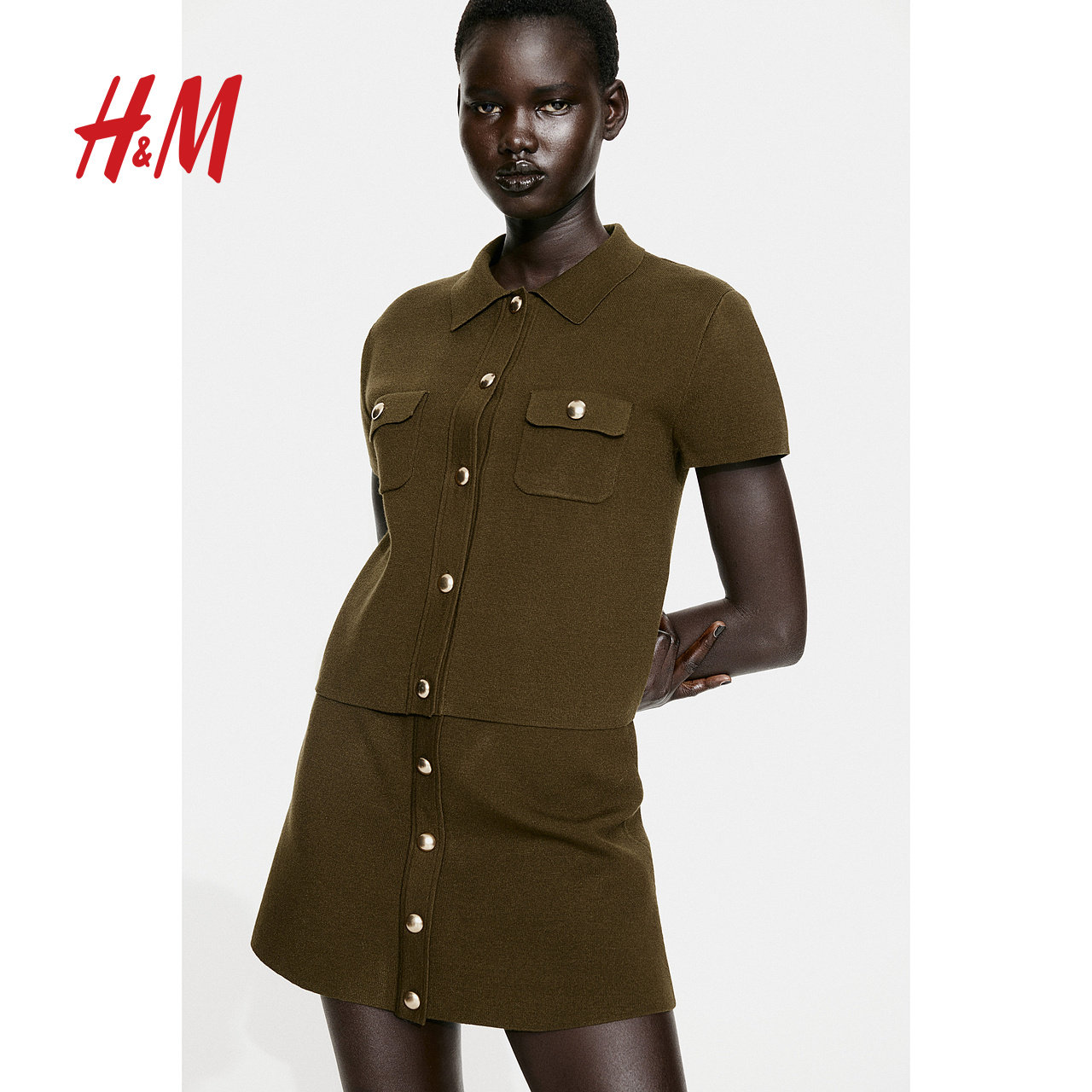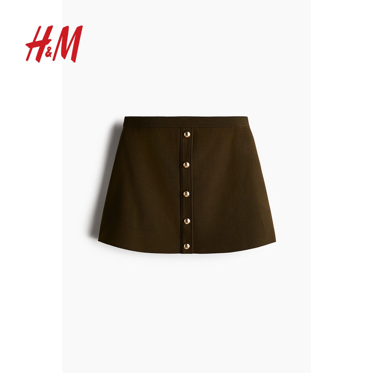 HM女装半身裙春季修身高腰纽扣细密针织半身短裙1257970