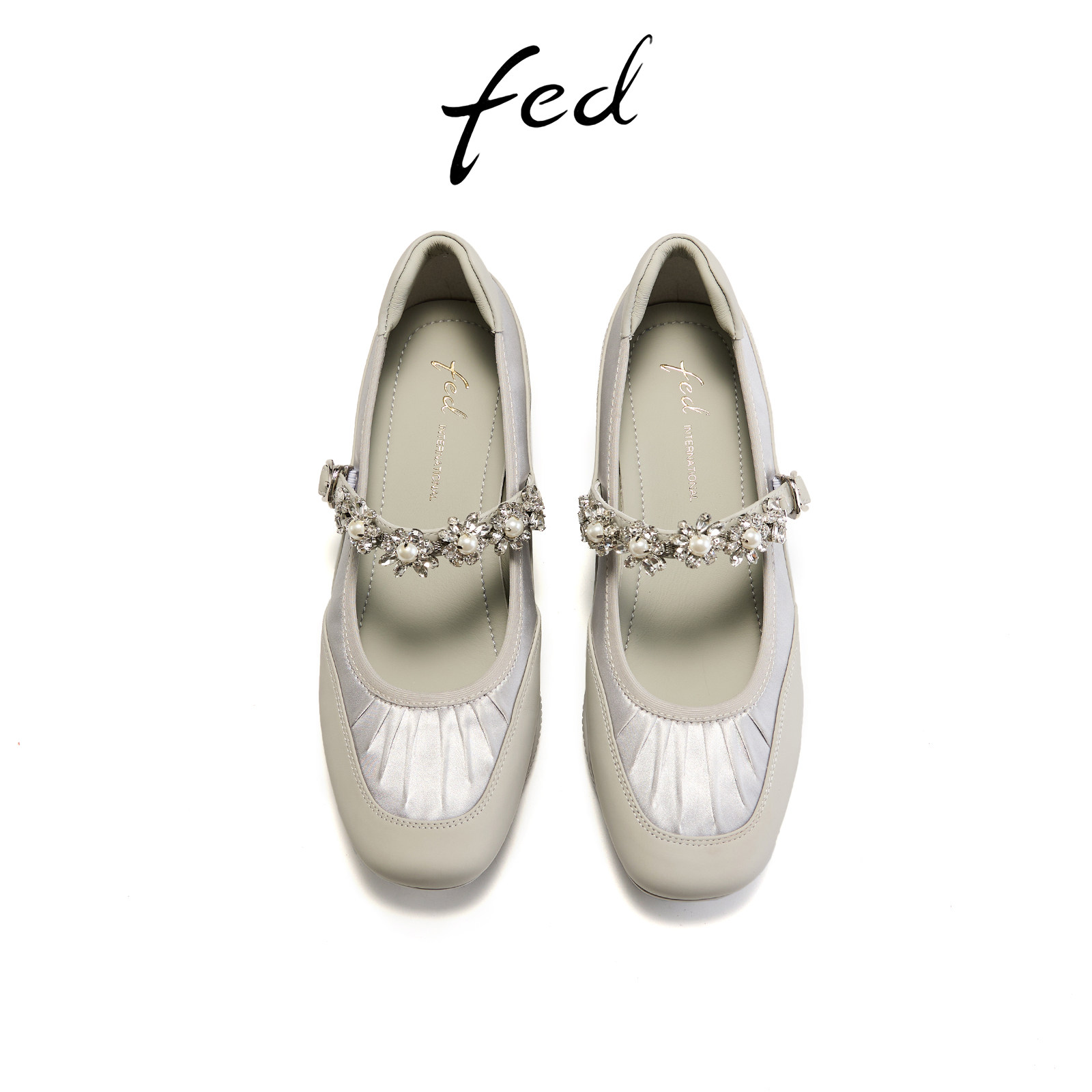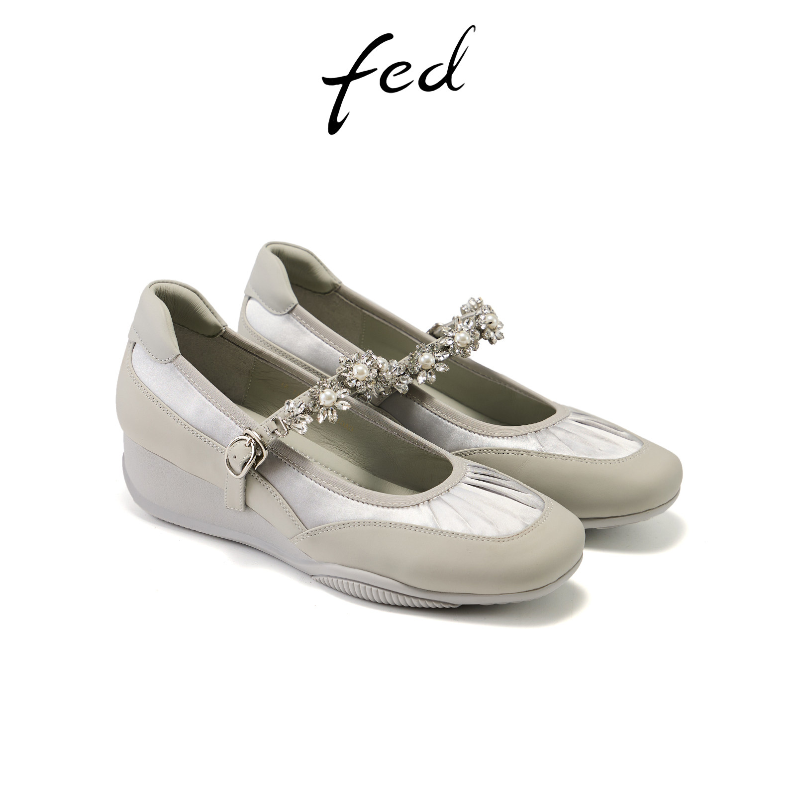 fed银色玛丽珍鞋春季新款女鞋胧岸珠言芭蕾鞋坡跟单鞋女款YAB183
