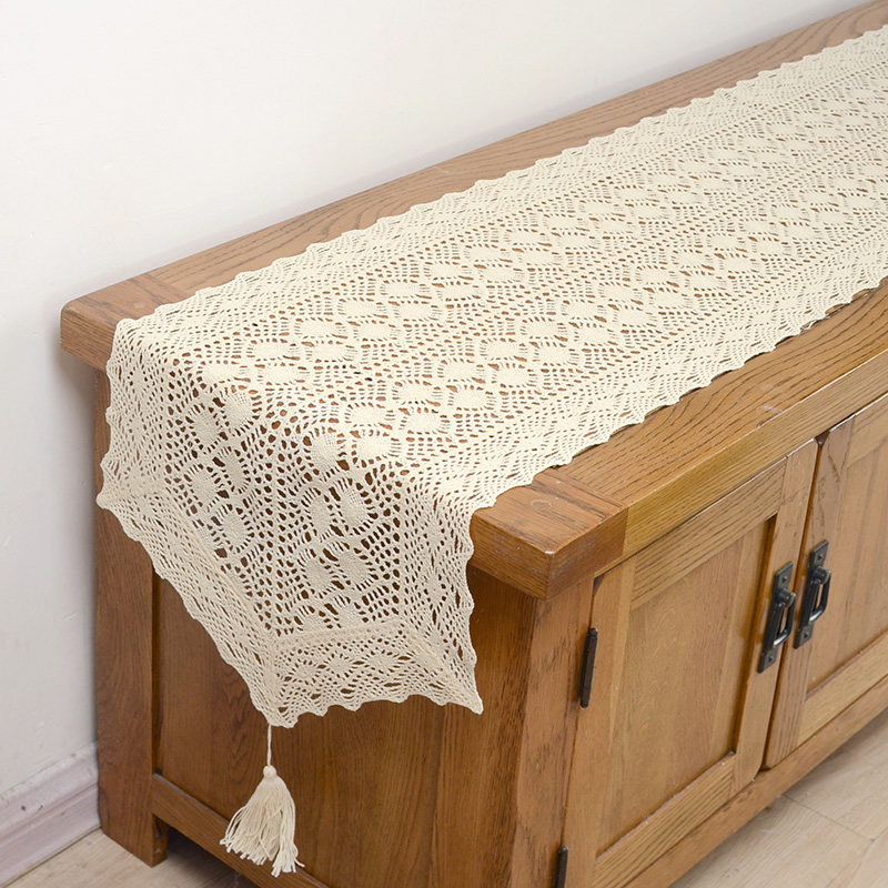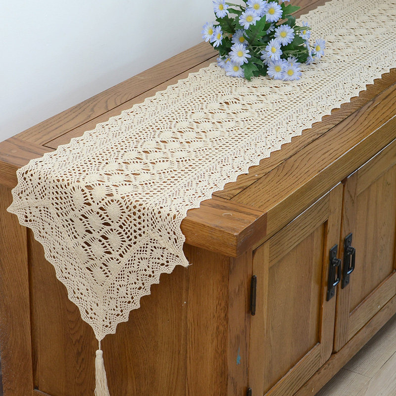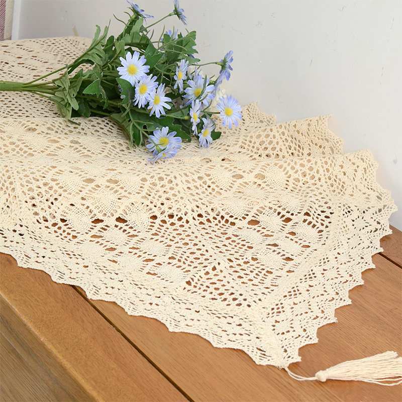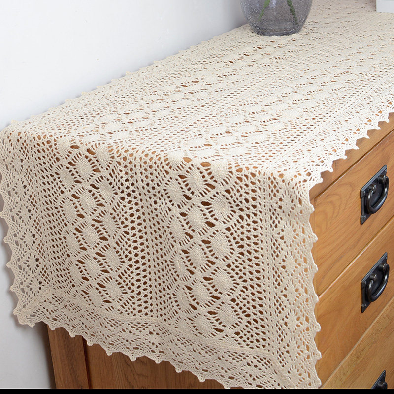 田园镂空棉麻桌布勾针桌旗布艺茶几垫电视柜盖巾餐边柜编织盖布