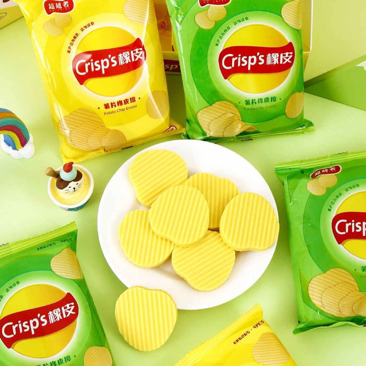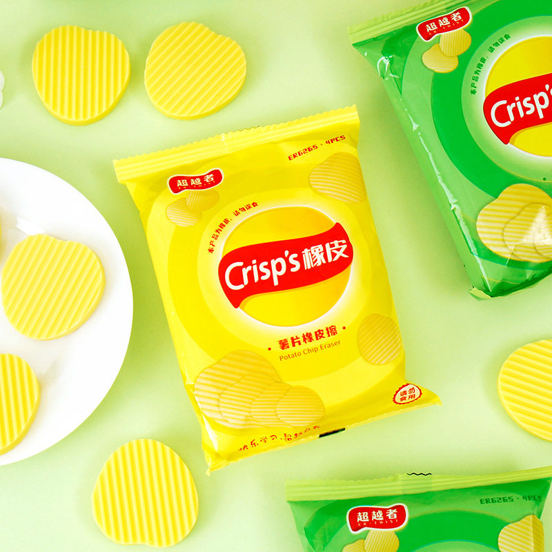 仿真文具薯片橡皮擦创意卡通可爱儿童学生像皮擦少屑不留痕像笔擦