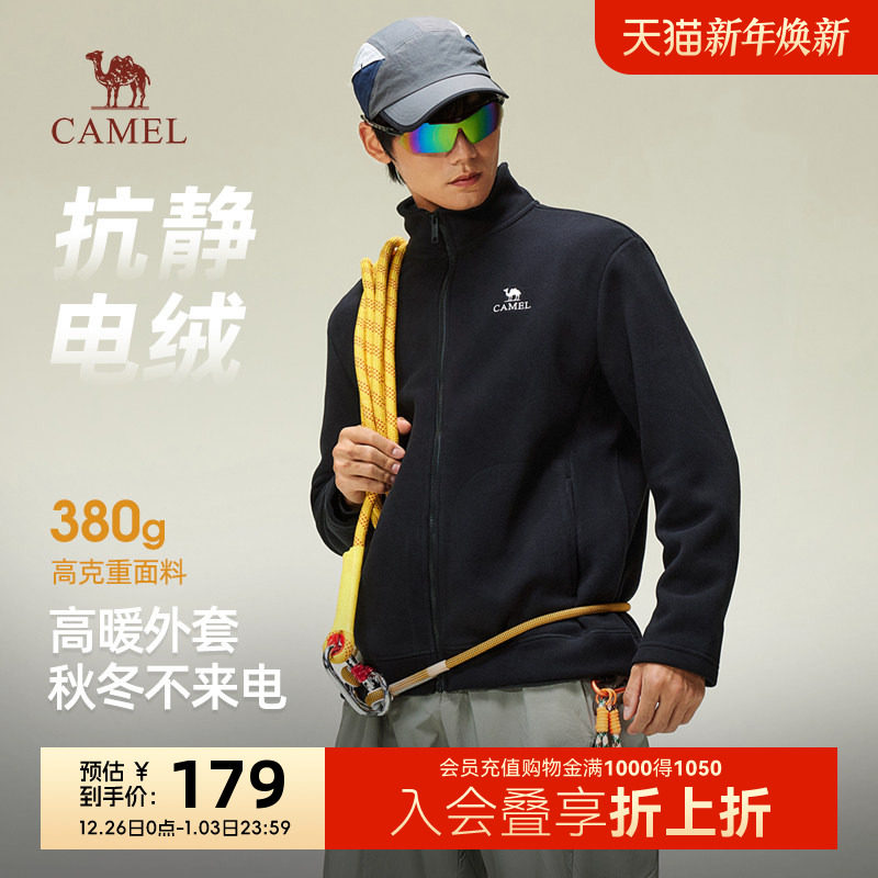 骆驼男装摇粒绒外套男秋冬季2025新款抗静电高克重保暖立领抓绒衣